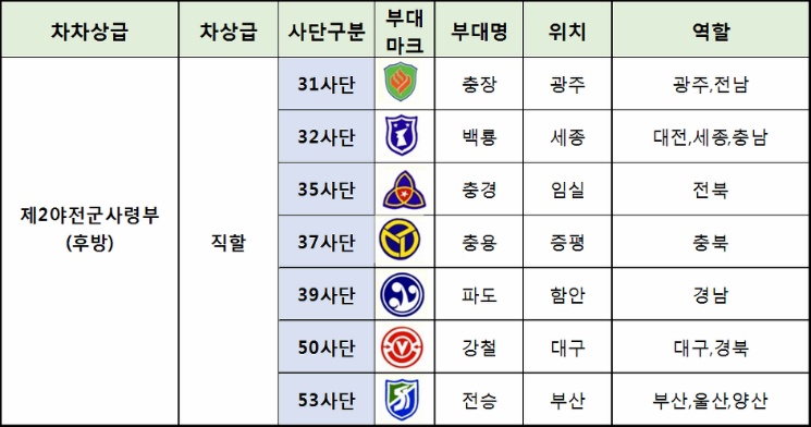 우리나라 후방을 책임지는 제2야전군사령부 산하에는 직할부대로