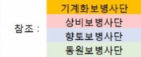 사단 종류 구분에는 색깔별로 기계화보병사단, 상비사단, 향토사단, 동원사단을 구분하였습니다