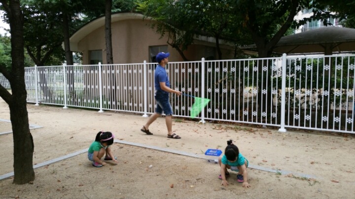 아빠는 매미 잡느라 바쁘고, 현자매는 흙놀이 하느라 바쁘고~ ㅎㅎ
