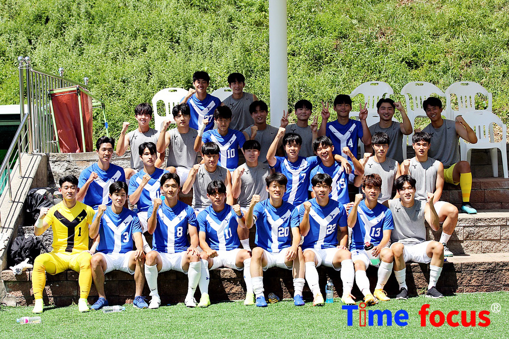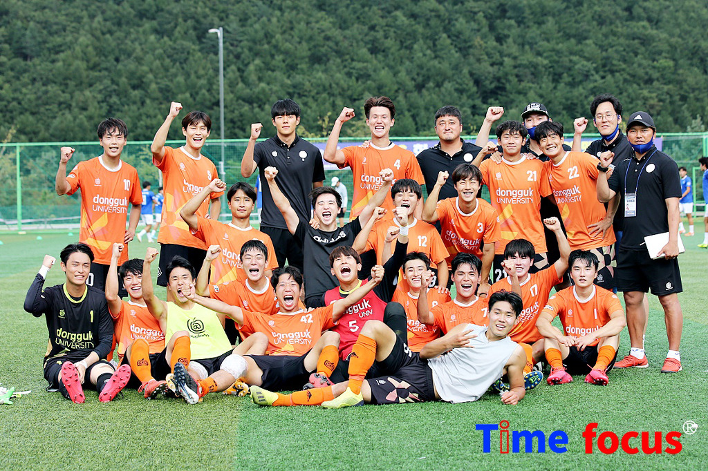 (지난 23일 태백 스포츠파크구장에서 '태백산기 제56회 추계대학축구연맹전' 호남대와 8강전를 2-0 승리을 거두고 4강진출한 서울 동국대선수들이 기념촬영하는 모습)