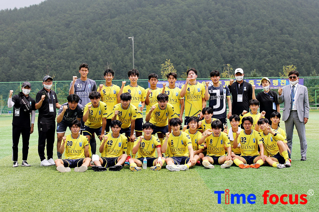 [타임포커스/김병용 기자]지난해 ‘제55회 추계 대학축구연맹전’에서 화려한 정상에서 포효를 누렸던 중앙대, 단국대, 선문대, 단국대 팀등 강력한 우승 후보들이 이번 대회에서 중앙대가 24강에서, 단국대는 8강에서 줄줄이 탈락에 고배를 들이키는 가운데 지난해 정상의 길목에서 이들 팀들에게 좌절당했던 백두대간기는 전주대(감독 정진혁), 용인대(감독 이장관), 한남대(감독 박규선), 연세대(코치 최태호)가, 또한 태백산기엔 숭실대(감독 이경수), 열린사이버대(감독 이규준), 동국대(감독 안효연), 사이버한국어외대(감독 유동우)가 절치부심 끝에 대학축구 판도 변화를 이끌고 있으며 특히 올해는 코로나 여파로 유일하게 열리는 전국대학축구대회도 될 수 있는 상황이고 여기에 김학범 도쿄올림픽국가대표외 많은 프로팀 스카우트등 축구관계자들이 대거 몰려 지켜보는 가운데 프로무대 진출을 위해 자기를 보여 줄 수 있는 절박함과 간절함이다.