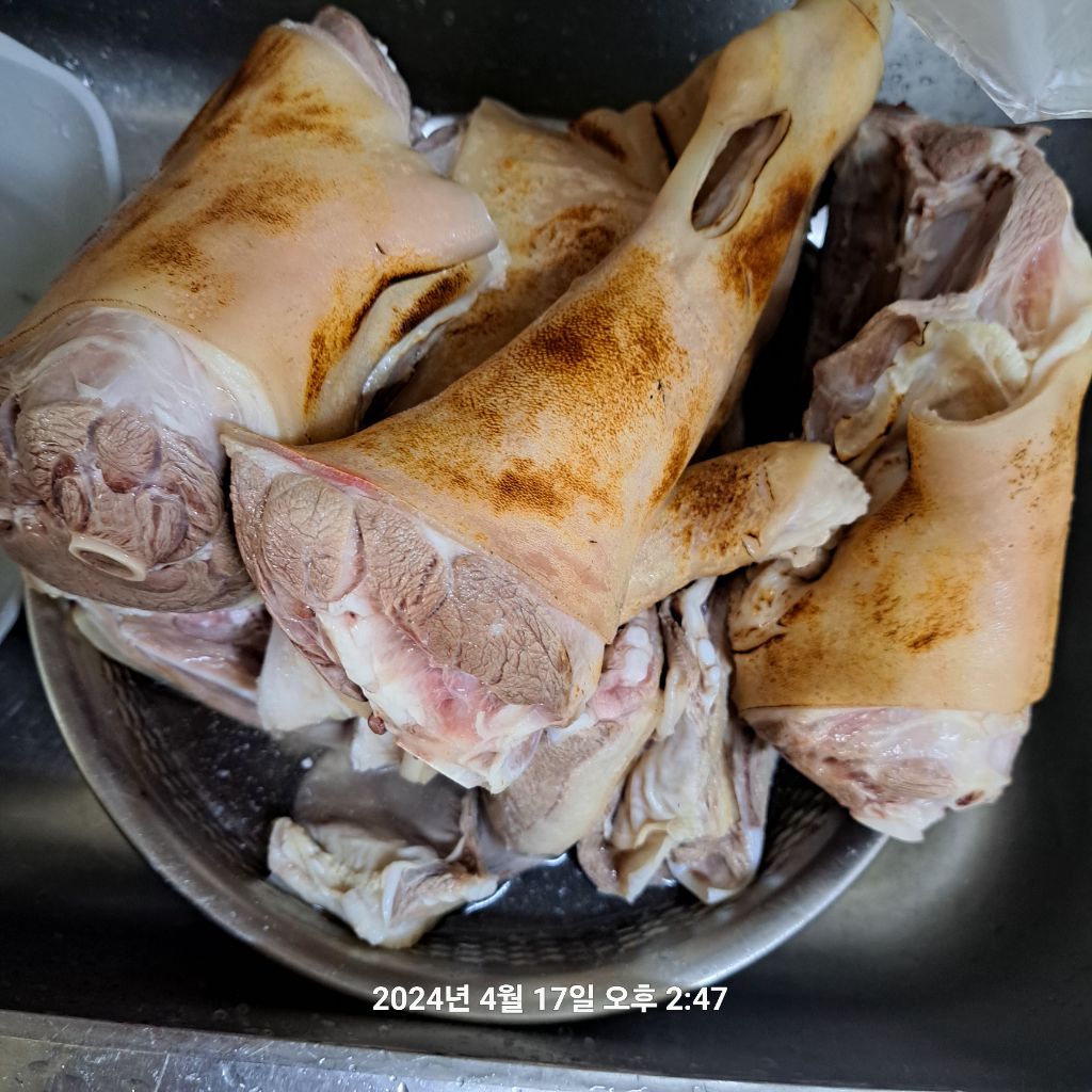 1차 손질해 놓은 고기 삶습니다