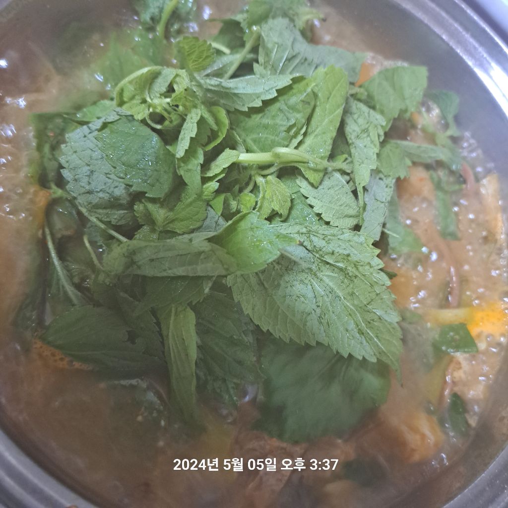 완성될 즈음 깻잎 넣어주고 한소끔