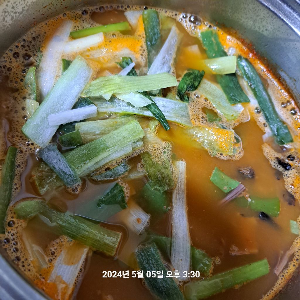 한소끔 끓으면 대파 넣고