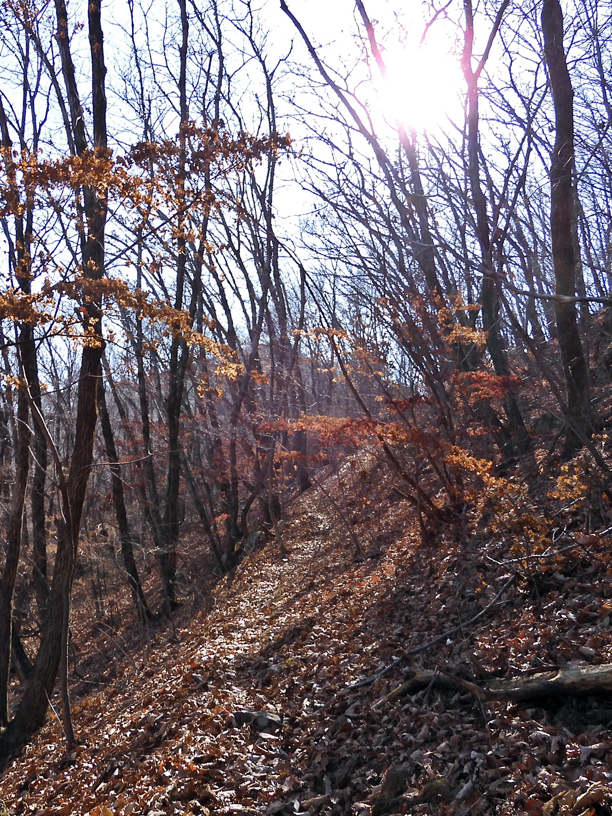 ▲ 간밤에 내린 이슬에 젖은 낙엽의 물방울이 햇살에 반사되어 보석처럼 반짝거리는 기분 좋은 길이다.