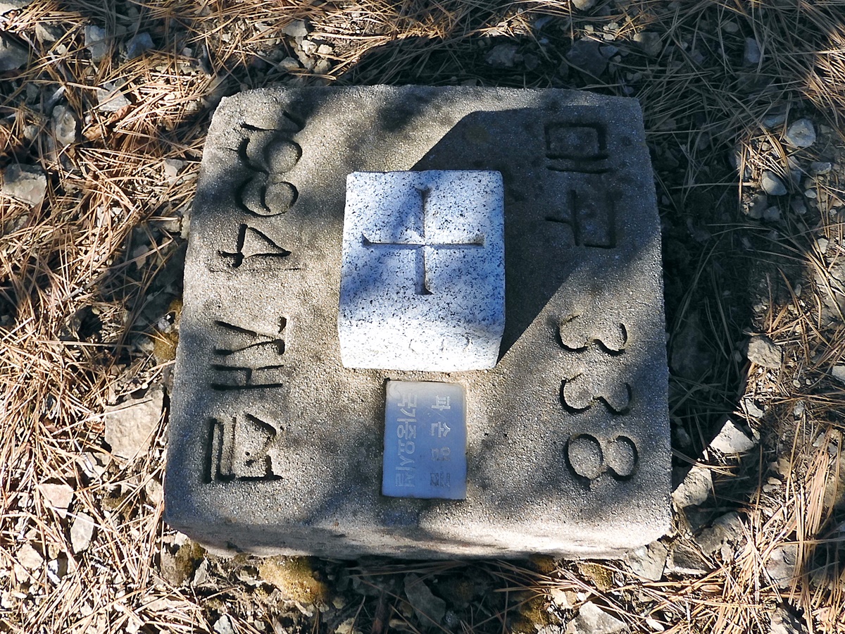 ▲ 정상석은 없고 삼각점만 있는 50m거리의 주암산 정상.
