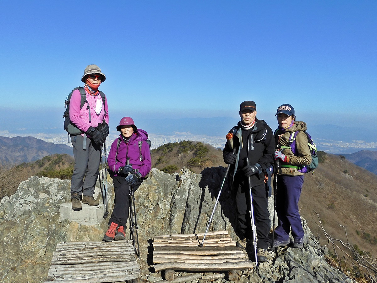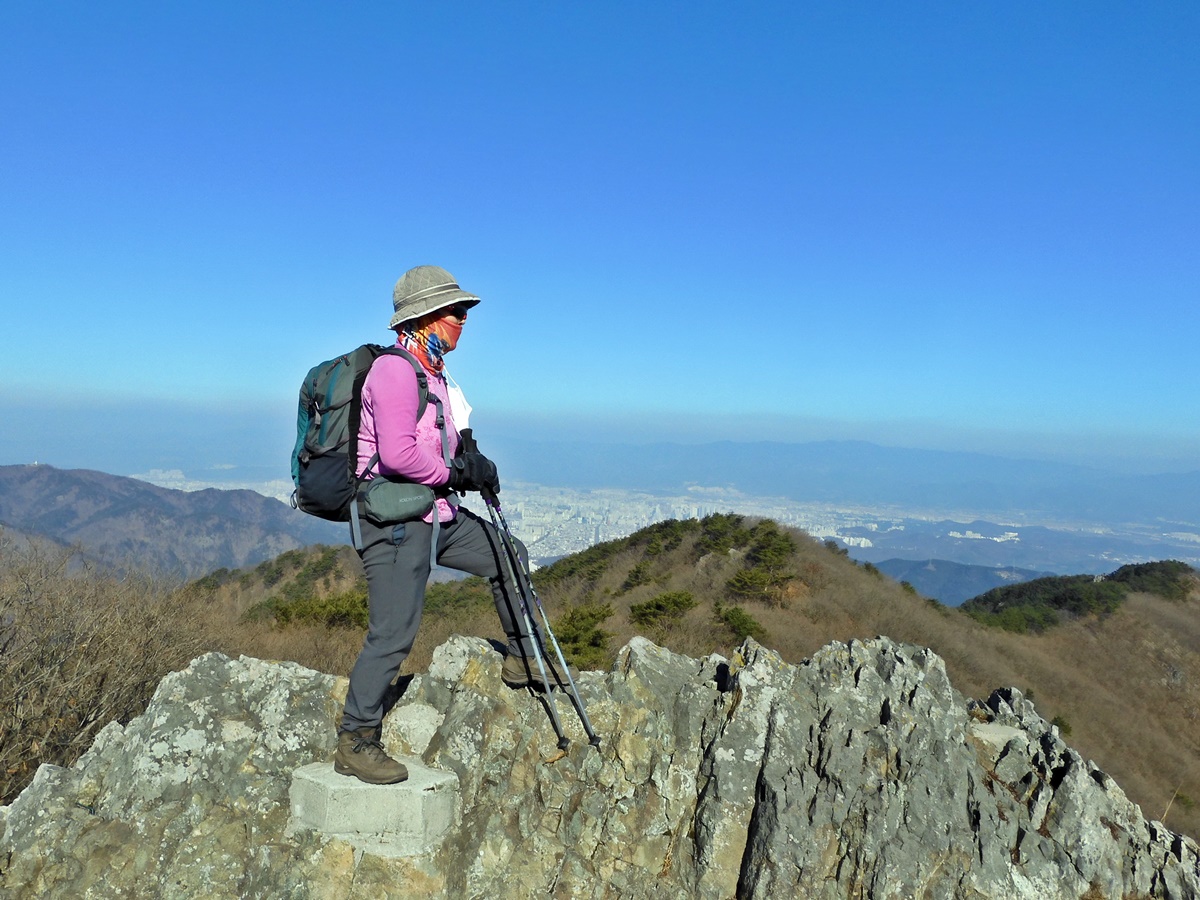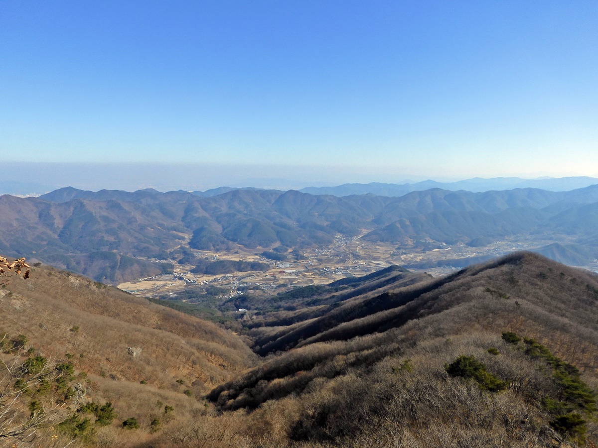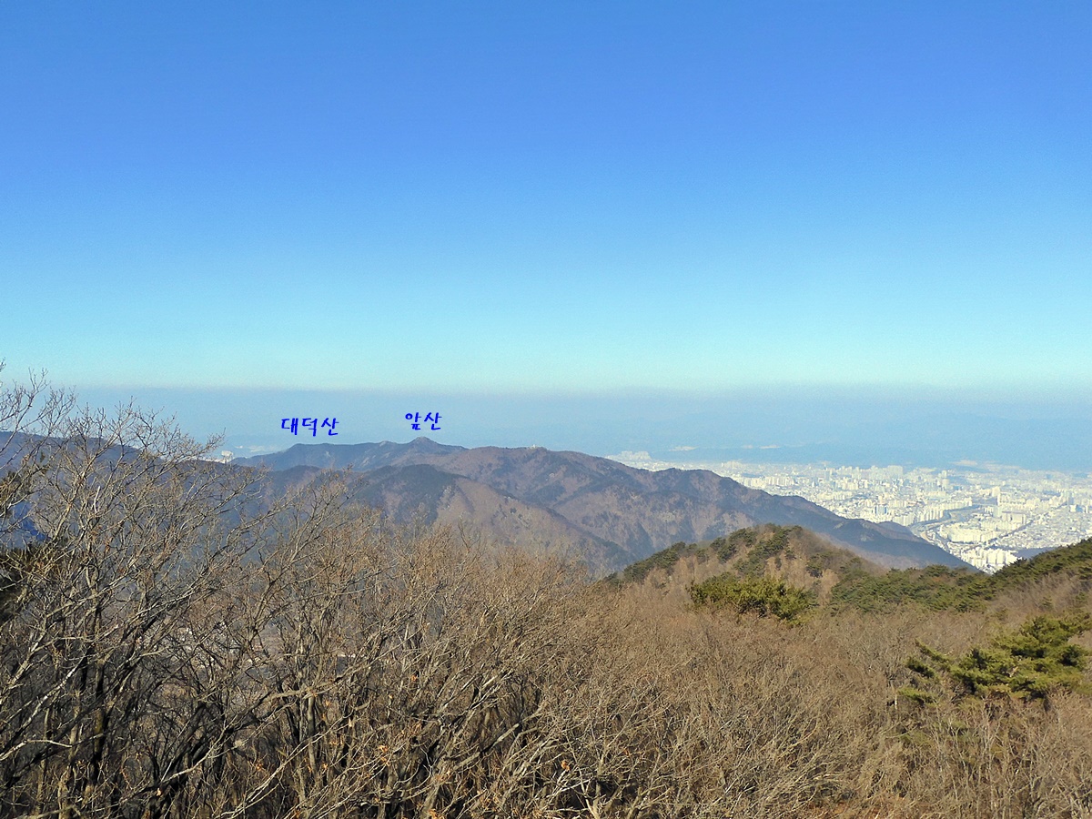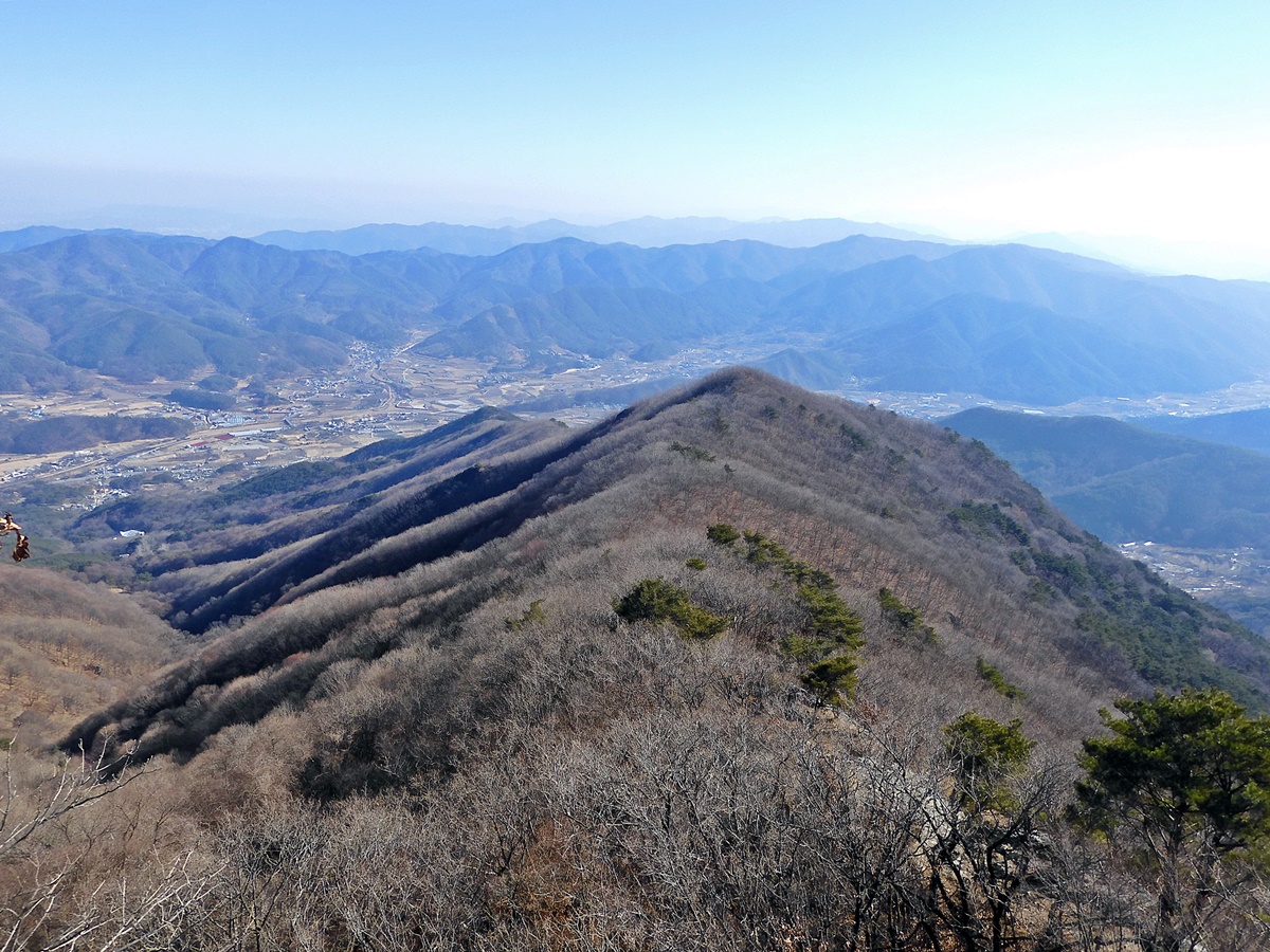 건너편으로는 경산 성암산에서 용지봉까지 이어지는 능선이 거침없다.