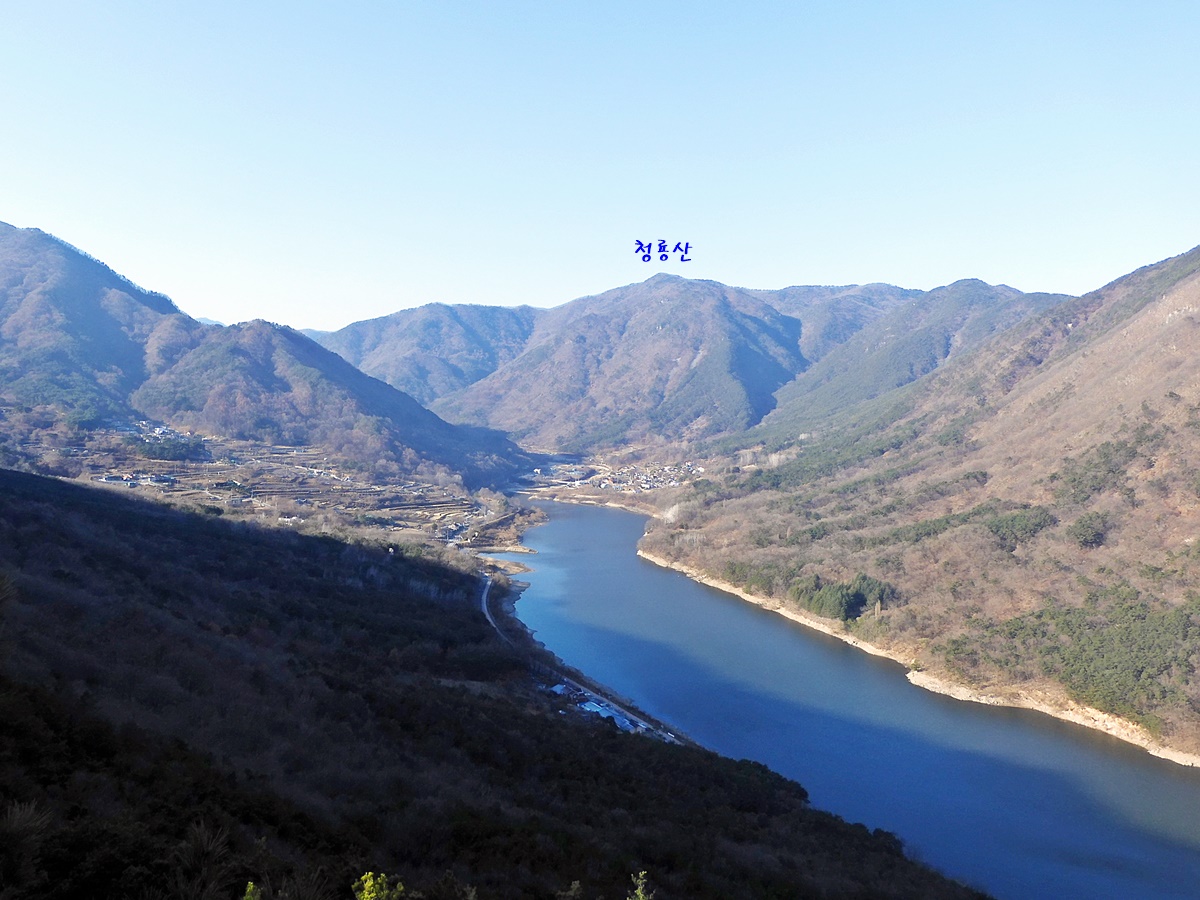 ▲ 가창댐과 정대골의 오리1리와 청룡산이 마을지킴이처럼 서있는 멋진 풍경이다.