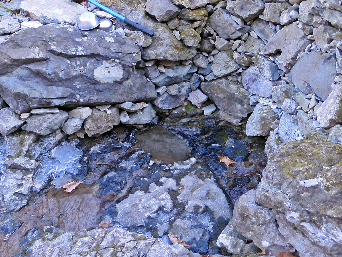 ▲ 응달이라 살얼음이 끼어있는 샘...
