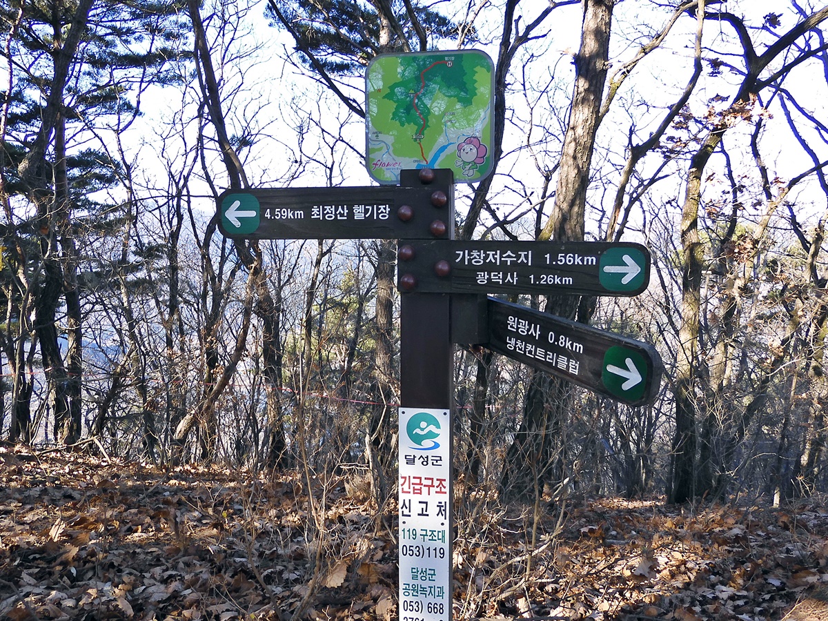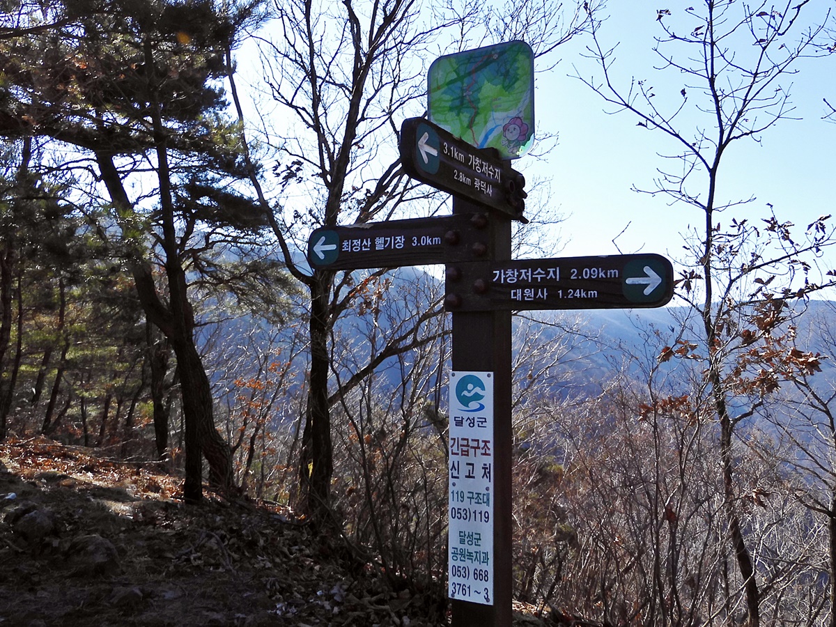 ▲ 하산하게 될 가창중학교 방향을 확인하고 주암산 정상도 찍고