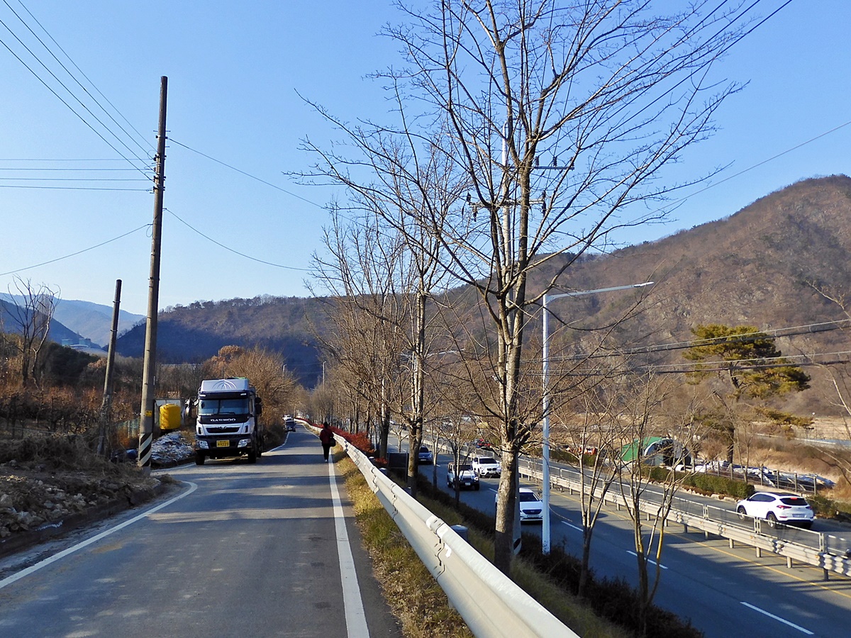 ▲ 냉천리 버스정류장까지 도로를 따라서...