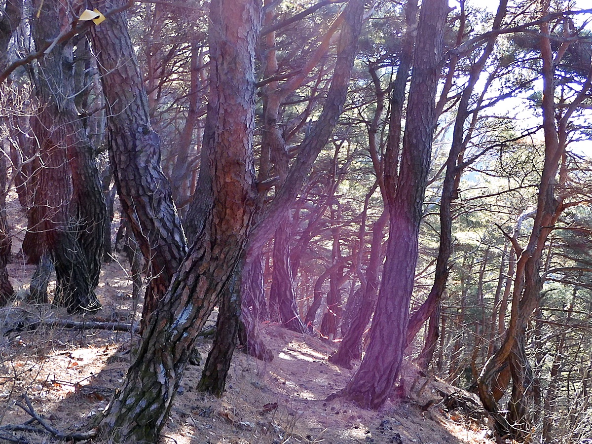 ▲ 소나무사이에 내려 앉은 햇살이 몽환적이다.