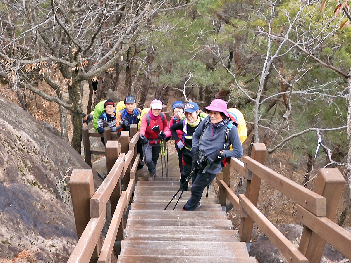 "B" 팀은... 산성산 경유 고산골로 하산이다... 작별의 주먹치기를 나누고..