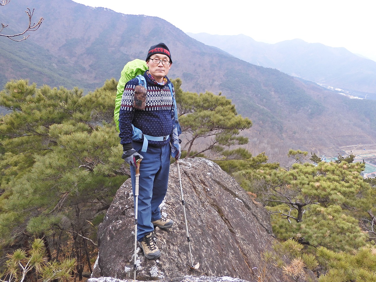 ▲ 우리도 마침... 홀로 몸풀기를 하고 있는 산객에게 부탁하여.. 한컷을 야대장님한테 보낸다.