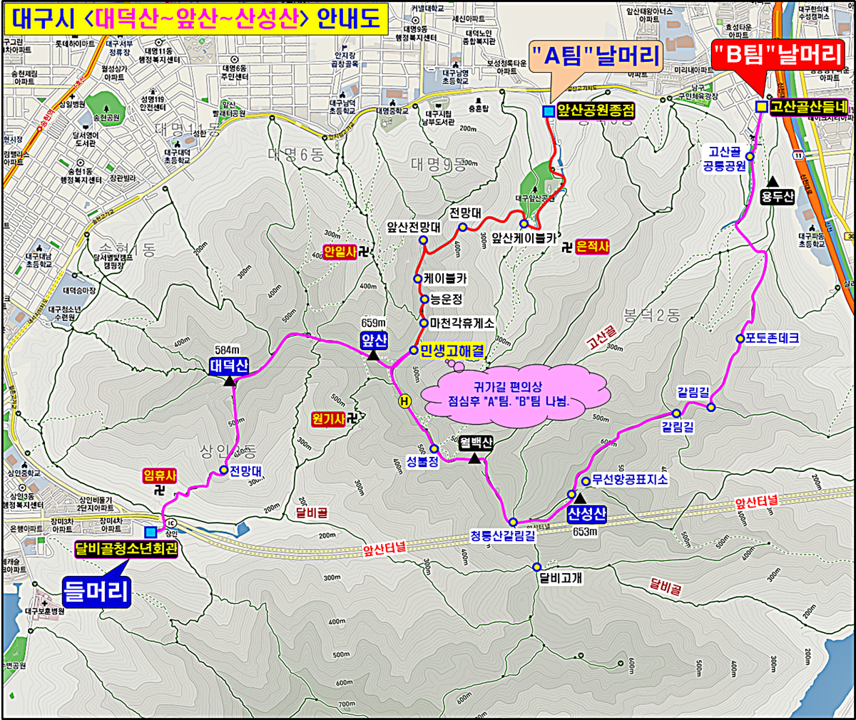 "A" 팀은... 앞산 전망대에서 큰골 방향으로...