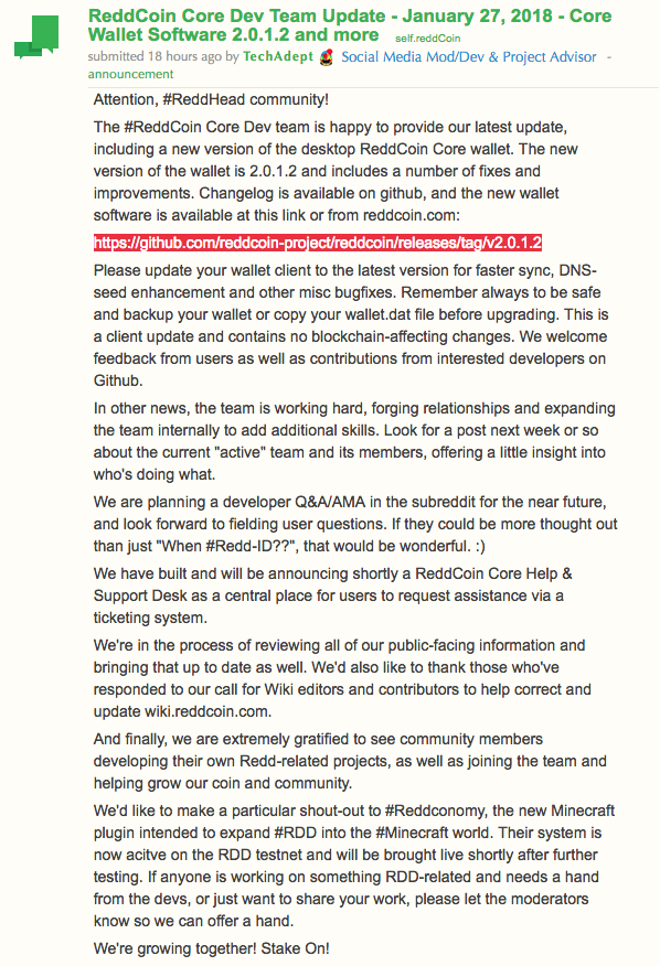원문출처: https://www.reddit.com/r/reddCoin/comments/7tcoe5/reddcoin_core_dev_team_update_january_27_2018/