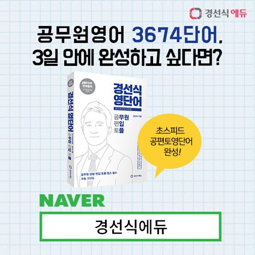 [영어단어장/영어단어빨리외우는법]공무원영어시험볼 때, 공무원영어어휘가 발목을 잡는다면?_inveterate 작성자경선식영단어|작성시간20.09.02|조회수174 목록 댓글 0 글자크기 작게가 글자크기 크게가 다음검색 현재 게시글 추가 기능 열기 북마크 공유하기 신고 센터로 신고 댓글 댓글 0 댓글쓰기 답글쓰기 댓글 리스트