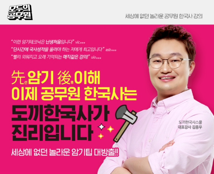 [모두의공무원] 공무원한국사 암기팁X테크닉으로 완벽 해결! 김종우 도끼한국사 기본이론 강의 + 학습자료 10명 무료 증정이벤트(~7/1)