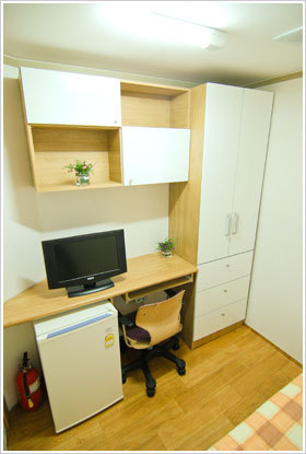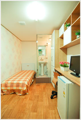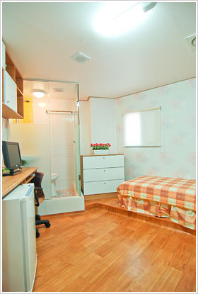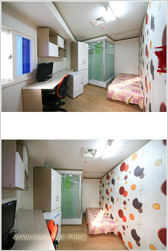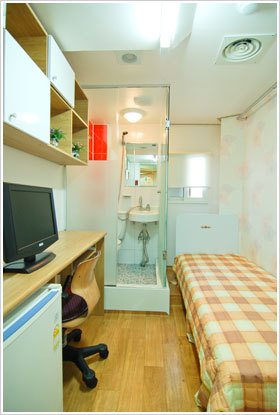 원룸형(개인화장실과 샤워룸)과 미니룸(공용화장실과샤워실)으로 설계되어 있으며