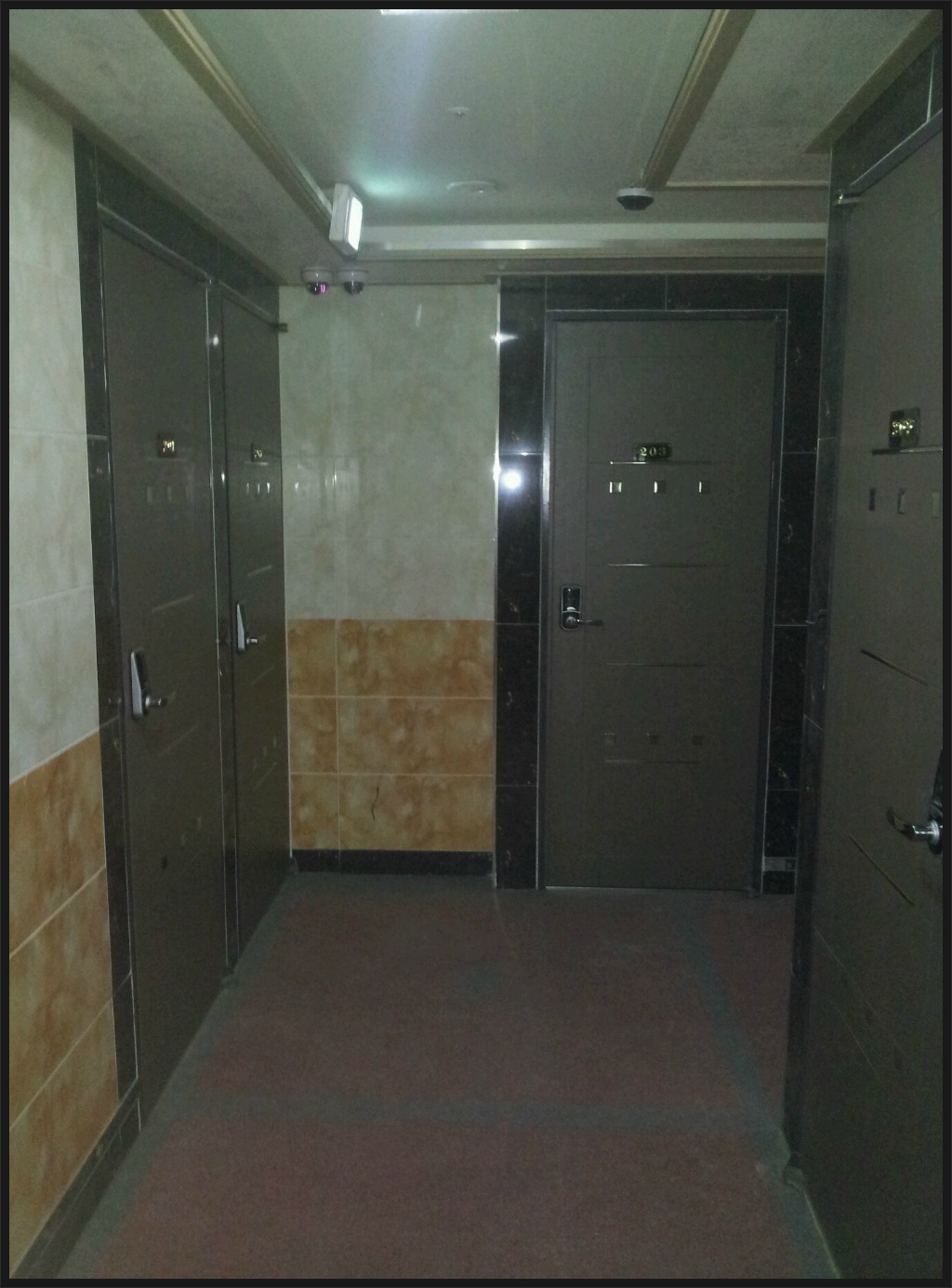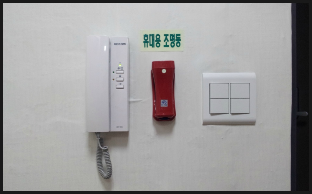 출입카드 시스템으로 현관출입문과 각 방마다 개개인의 카드로 출입할수있도록 되어있습니다.)