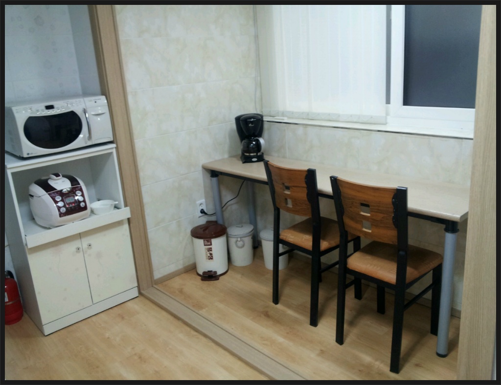 제공되고 냉온수기, 전자렌지, 김치냉장고,주방기구 일체도 무료로 제공됩니다