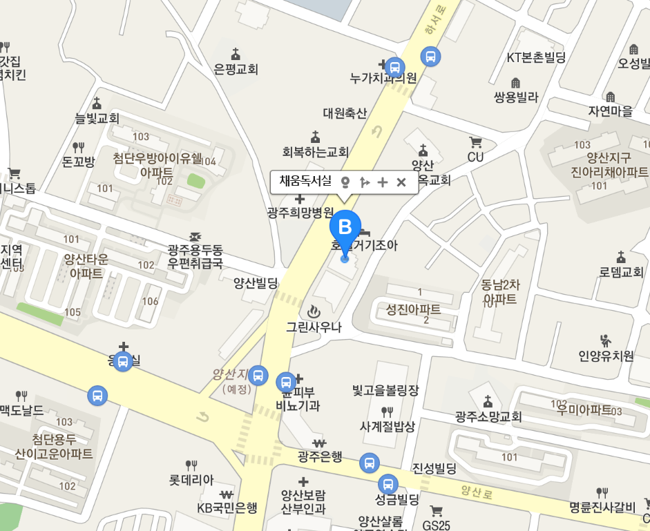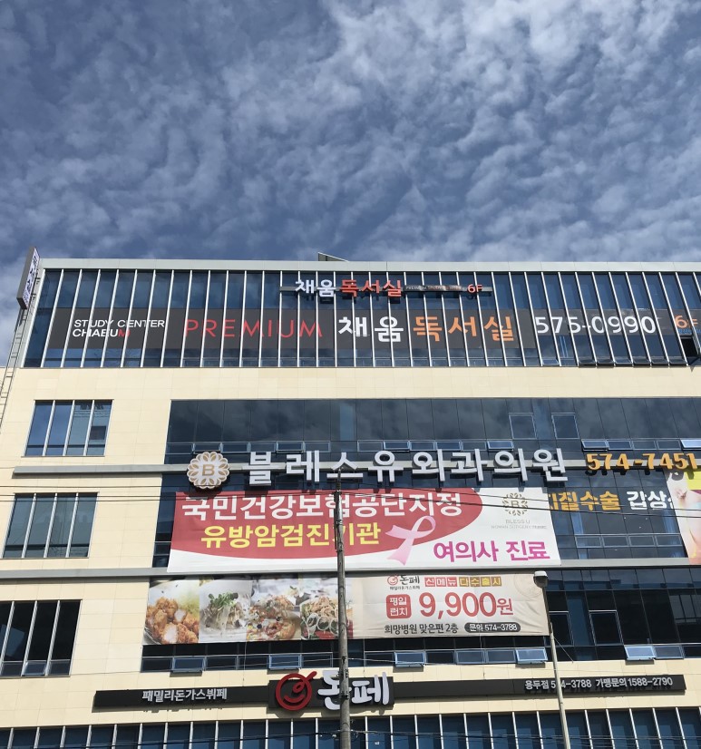 프리미엄 스터디센터 채움 독서실은 광주 북구 용두동(양산동) 희망병원 건너편에 있습니다.