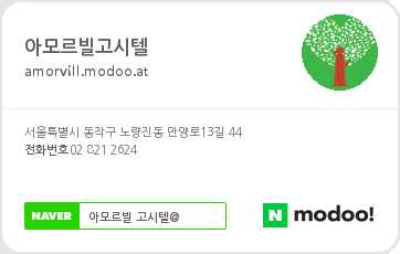 | 안녕하세요. 넓은 고시텔, 노량진 아모르빌고시텔 입니다. 노량진에서 가장 넓고 쾌적한 환경을 수험생분께 제공하고 있다고 자부하는 저희 아모르빌은 큰 꿈을 위한 수험생활에 불편함이 없도록 늘 최선을 다하겠습니다. 현재 새로이 도배시공 및 조명교체를 진행중입니다. 더욱 밝고 깔끔해진 아모르빌을 만나 보세요~!! 문의 사항은 언제든 연락 주시고, 직접 방문하시어 보시는 것을 자신있게 권해 드리니가급적 사전 예약 후 방문 상담을 권해 드립니다.^^ 아모르빌고시텔: 02-821-2624 / 010-6326-9981 (홈페이지- 하단 이미지 클릭) <아모르빌고시텔의 10가지 특장점> 1. 노량진 인근의 모든 고시텔(원룸) 중, "아모르빌의 전 객실이 가장 넓다고" 자신합니다! (억지로 설계한 고시원이 아닙니다. 건물자체가 원룸으로 시공되어 넓고 가벽이 없습니다.) 2. 노량진역 학원가 접근이 뛰어나고 인근 아파트단지의 조용한 주거환경을 이용할 수 있습니다.