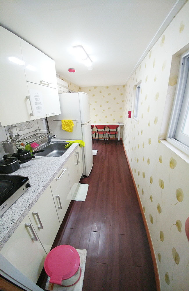 주방시설 인덕션, 전자레인지, 공용냉장고, 정수기, 전기포트, 전기밥솥, 식탁