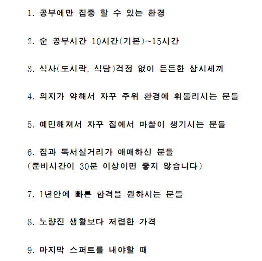 마지막으로 저희 금동고시원은 이런 분들께 적합 합니다.
