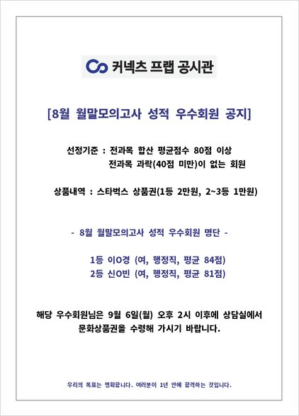 대구 범어점에서는 매월 성적 우수회원 및 합격생의 공부방법을 공유하고 있습니다.