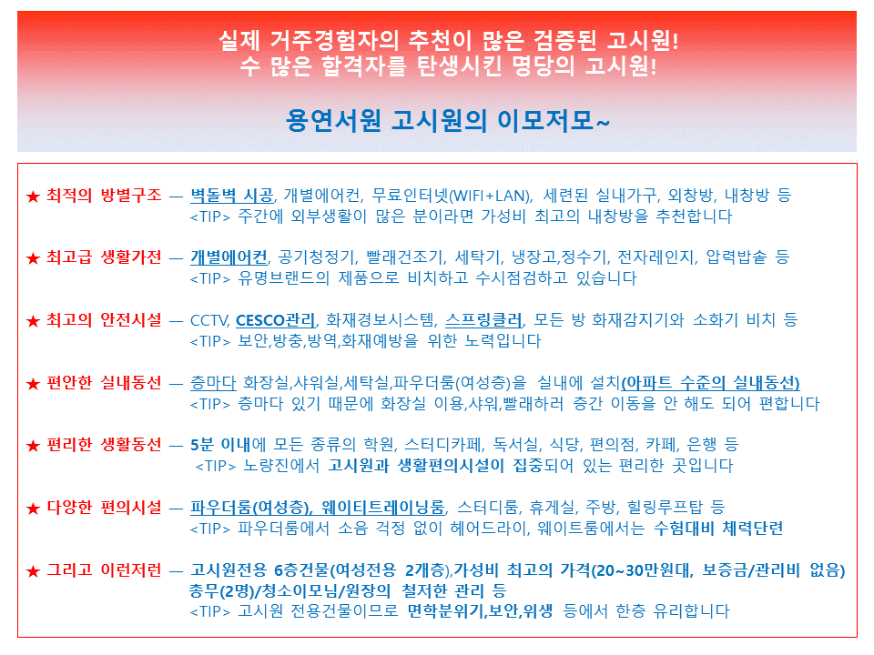 노량진에서 실제 공부해본 사람들이 많이 추천하는 각종시험준비 전문고시원(남녀전용층 분리운영) ♥말이 필요없음.직접 방문 확인요♥