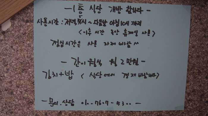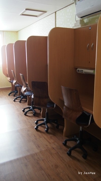 주인아주머니가 분평동에 있는 고시원, 독서실에서 10년간 관리인으로 근무하신 분이라 처음부터 독서실로 계획건축한 올 봄에 지은 독서실 입니다.(흡연실은 옥상에 준비되어 있고 과학교육연구원 뒤에 있는 시내 가깝고 공기 좋은 산 속 고시원 같은 독서실 입니다.