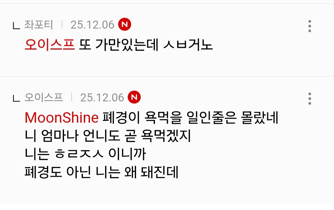 답댓글 작성자오이스프 작성시간 25.12.07 살롱드홈즈 왜 니가 ㅈㄹ이야 호미리는 가만히 있는데