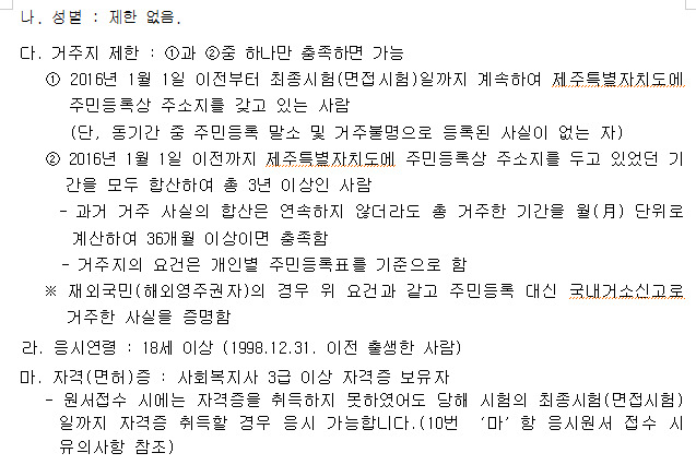 [[시험공고]]2016 제1회 제주도 지방공무원(사회복지직) 임용시험 공고 (접수: 2.1~3 / 시험: 3.19) 작성자♡9꿈이♡|작성시간16.01.11|조회수1,317 목록 댓글 0 글자크기 작게가 글자크기 크게가 (별첨1) 장애유형별 편의제공 안내.hwp 제1회지방공무원(사회복지직)임용시험공고문.hwp 첨부파일첨부된 파일이 21개 있습니다. jpg 파일 1.jpg 다운로드 hwp 파일 (별첨1) 장애유형별 편의제공 안내.hwp 다운로드 hwp 파일 제1회지방공무원(사회복지직)임용시험공고문.hwp 다운로드 jpg 파일 1.jpg 다운로드 jpg 파일 2.jpg 다운로드 jpg 파일 3.jpg 다운로드 jpg 파일 4.jpg 다운로드 jpg 파일 5.jpg 다운로드 jpg 파일 6.jpg 다운로드 jpg 파일 7.jpg 다운로드 jpg 파일 8.jpg 다운로드 jpg 파일 9.jpg 다운로드 jpg 파일 10.jpg 다운로드 jpg 파일 11.jpg 다운로드 jpg 파일 12.jpg 다운로드 jpg 파일 13.jpg 다운로드 jpg 파일 14.jpg 다운로드 jpg 파일 15.jpg 다운로드 jpg 파일 16.jpg 다운로드 jpg 파일 17.jpg 다운로드 jpg 파일 18.jpg 다운로드 다음검색 현재 게시글 추가 기능 열기 북마크 공유하기 신고 센터로 신고 댓글 댓글 0 댓글쓰기 답글쓰기 댓글 리스트