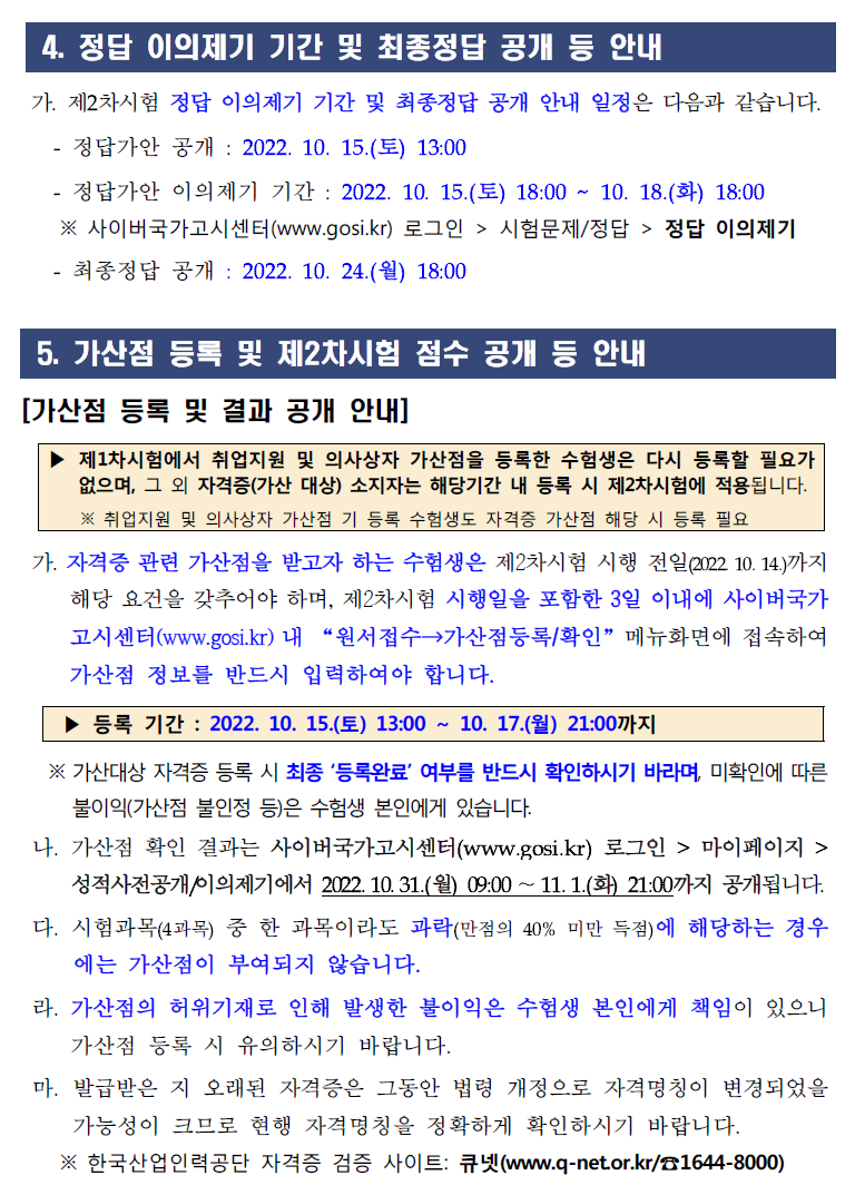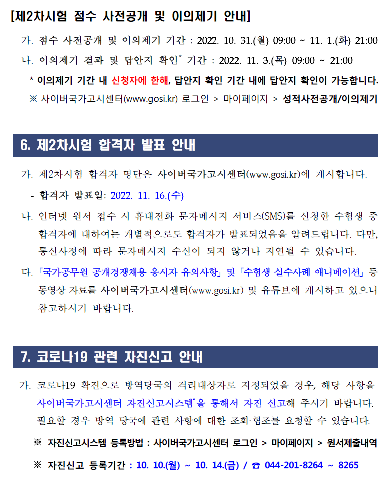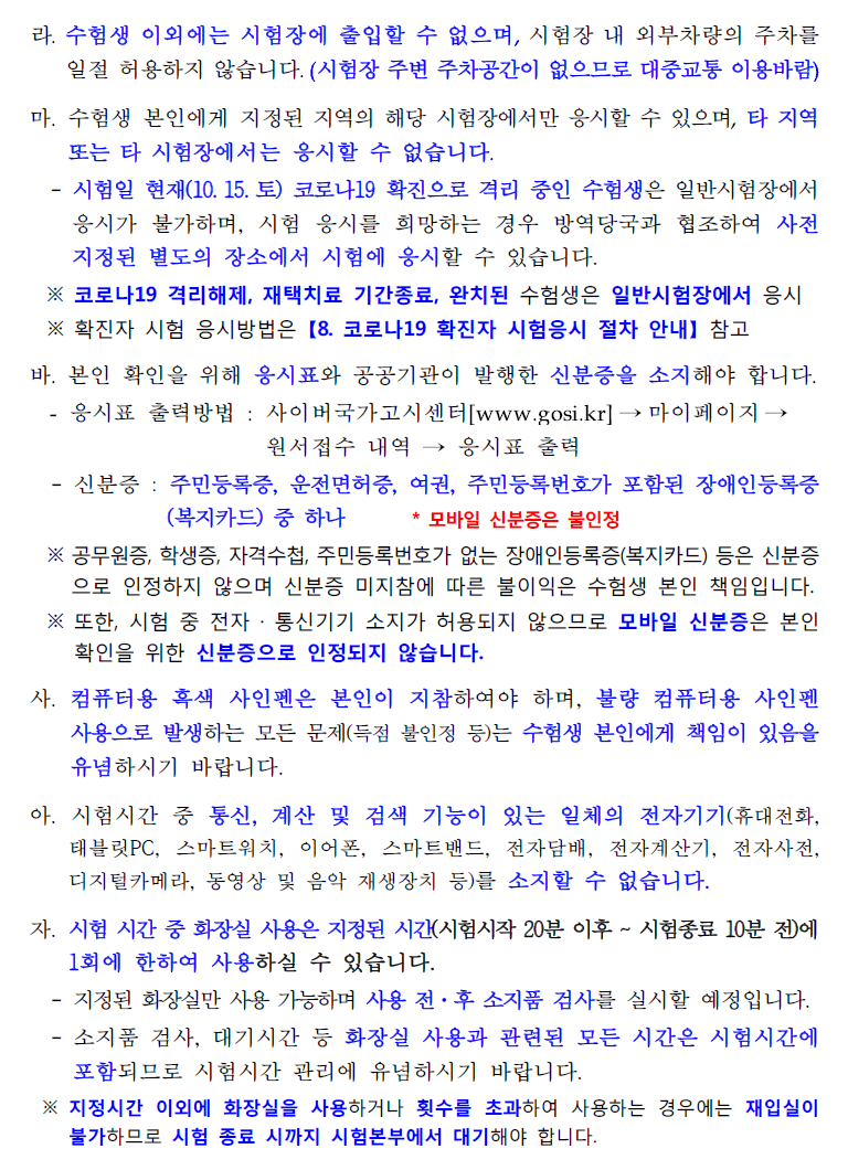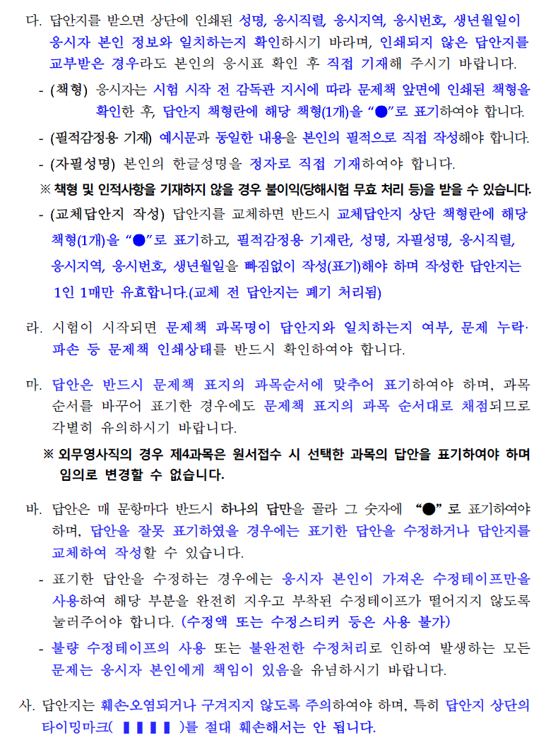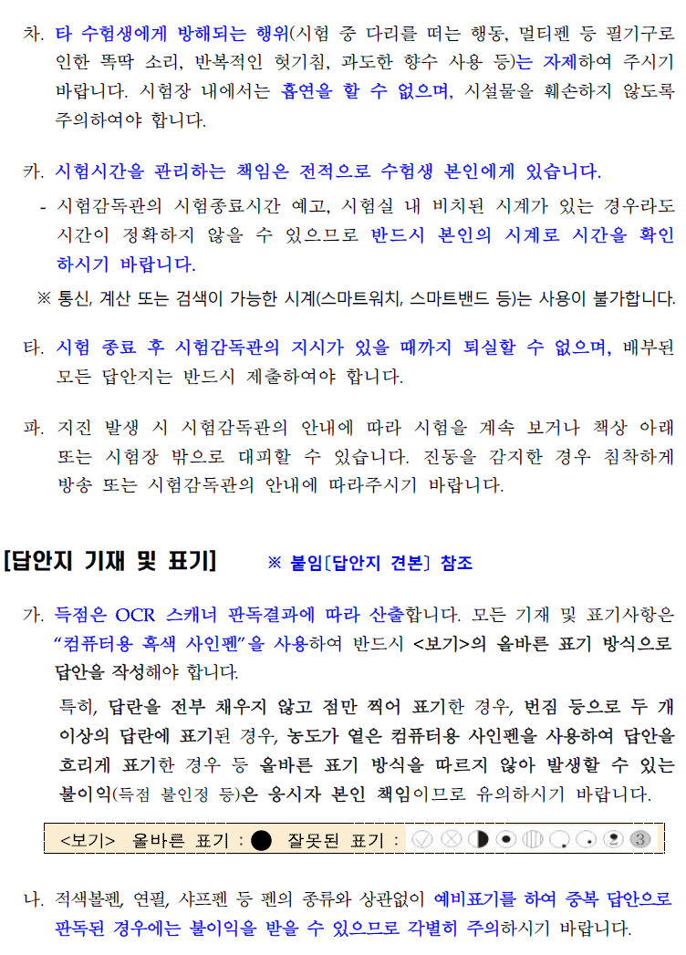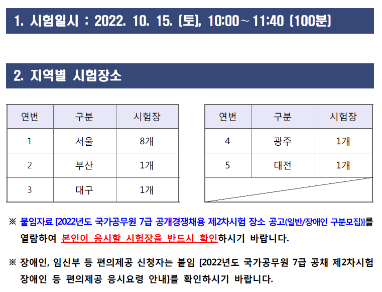 [[시험장소]]2022 인사혁신처 국가직 7급 공무원 공채 2차 필기시험 장소공고 (시험: 10.15) 작성자9꿈사운영위|작성시간22.10.07|조회수729 목록 댓글 0 글자크기 작게가 글자크기 크게가 (붙임1) 2022년도 국가공무원 7급 공개경쟁채용 제2차시험 일시 장소 및 응시자 준수사항.hwpx420.00KB(붙임2-1) 2022년도 국가공무원 7급 공채 제2차시험 시험장소 공고(일반 모집단위).pdf200.24KB(붙임3-1) 2022년도 국가공무원 7급 공채 제2차시험 시험장소 공고(장애인 모집단위).pdf54.74KB(붙임4) 22년도 국가공무원 7급 공채 제2차시험 장애인 등 응시자 편의제공 응시요령 안내.hwpx86.50KB(붙임5) 답안지 견본 (1).pdf1.99MB(붙임3) 2022년도 국가공무원 7급 공채 제2차시험 시험장소 공고(장애인 모집단위).xlsx14.29KB(붙임2) 2022년도 국가공무원 7급 공채 제2차시험 시험장소 공고(일반 모집단위).xlsx99.17KB 첨부파일첨부된 파일이 18개 있습니다. png 파일 국가직7급 시험장소1.png 다운로드 png 파일 국가직7급 시험장소10.png 다운로드 png 파일 국가직7급 시험장소3.png 다운로드 png 파일 국가직7급 시험장소5.png 다운로드 png 파일 국가직7급 시험장소2.png 다운로드 png 파일 국가직7급 시험장소4.png 다운로드 png 파일 국가직7급 시험장소6.png 다운로드 png 파일 국가직7급 시험장소8.png 다운로드 png 파일 국가직7급 시험장소11.png 다운로드 png 파일 국가직7급 시험장소9.png 다운로드 png 파일 국가직7급 시험장소7.png 다운로드 xlsx 파일 (붙임3) 2022년도 국가공무원 7급 공채 제2차시험 시험장소 공고(장애인 모집단위).xlsx 다운로드 pdf 파일 (붙임2-1) 2022년도 국가공무원 7급 공채 제2차시험 시험장소 공고(일반 모집단위).pdf 다운로드 etc 파일 (붙임1) 2022년도 국가공무원 7급 공개경쟁채용 제2차시험 일시 장소 및 응시자 준수사항.hwpx 다운로드 pdf 파일 (붙임3-1) 2022년도 국가공무원 7급 공채 제2차시험 시험장소 공고(장애인 모집단위).pdf 다운로드 etc 파일 (붙임4) 22년도 국가공무원 7급 공채 제2차시험 장애인 등 응시자 편의제공 응시요령 안내.hwpx 다운로드 xlsx 파일 (붙임2) 2022년도 국가공무원 7급 공채 제2차시험 시험장소 공고(일반 모집단위).xlsx 다운로드 pdf 파일 (붙임5) 답안지 견본 (1).pdf 다운로드 다음검색 현재 게시글 추가 기능 열기 북마크 공유하기 신고 센터로 신고 댓글 댓글 0 댓글쓰기 답글쓰기 댓글 리스트