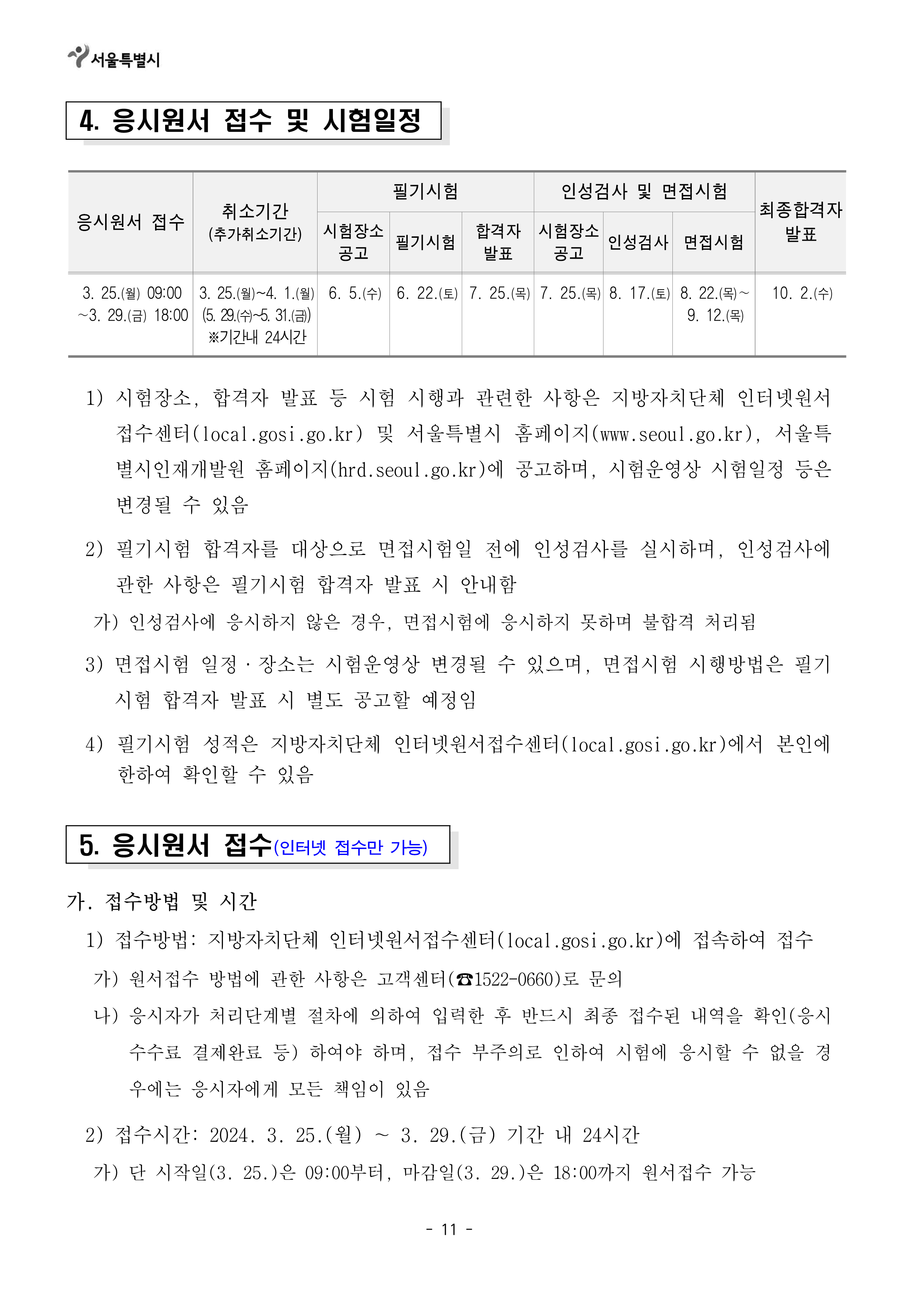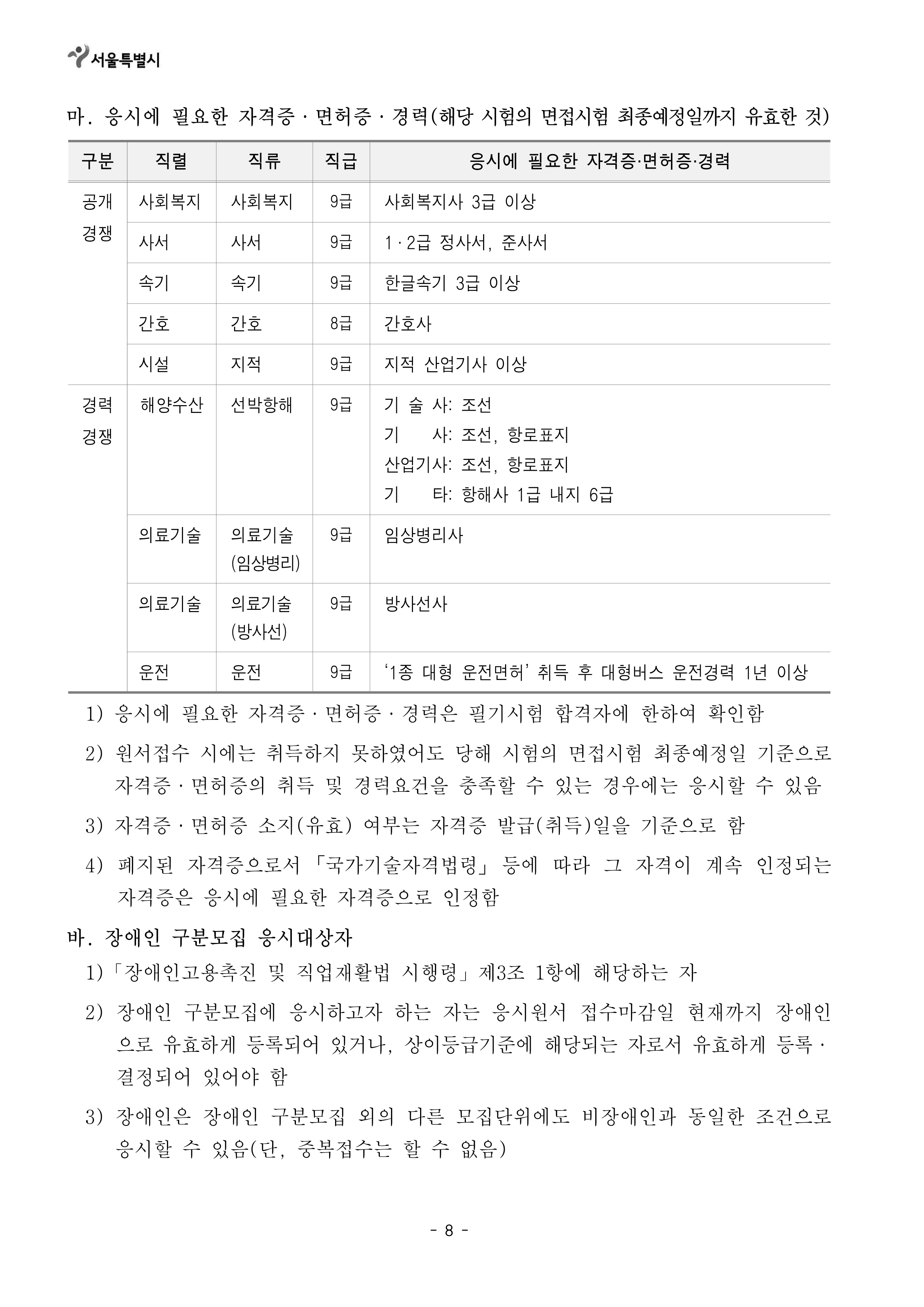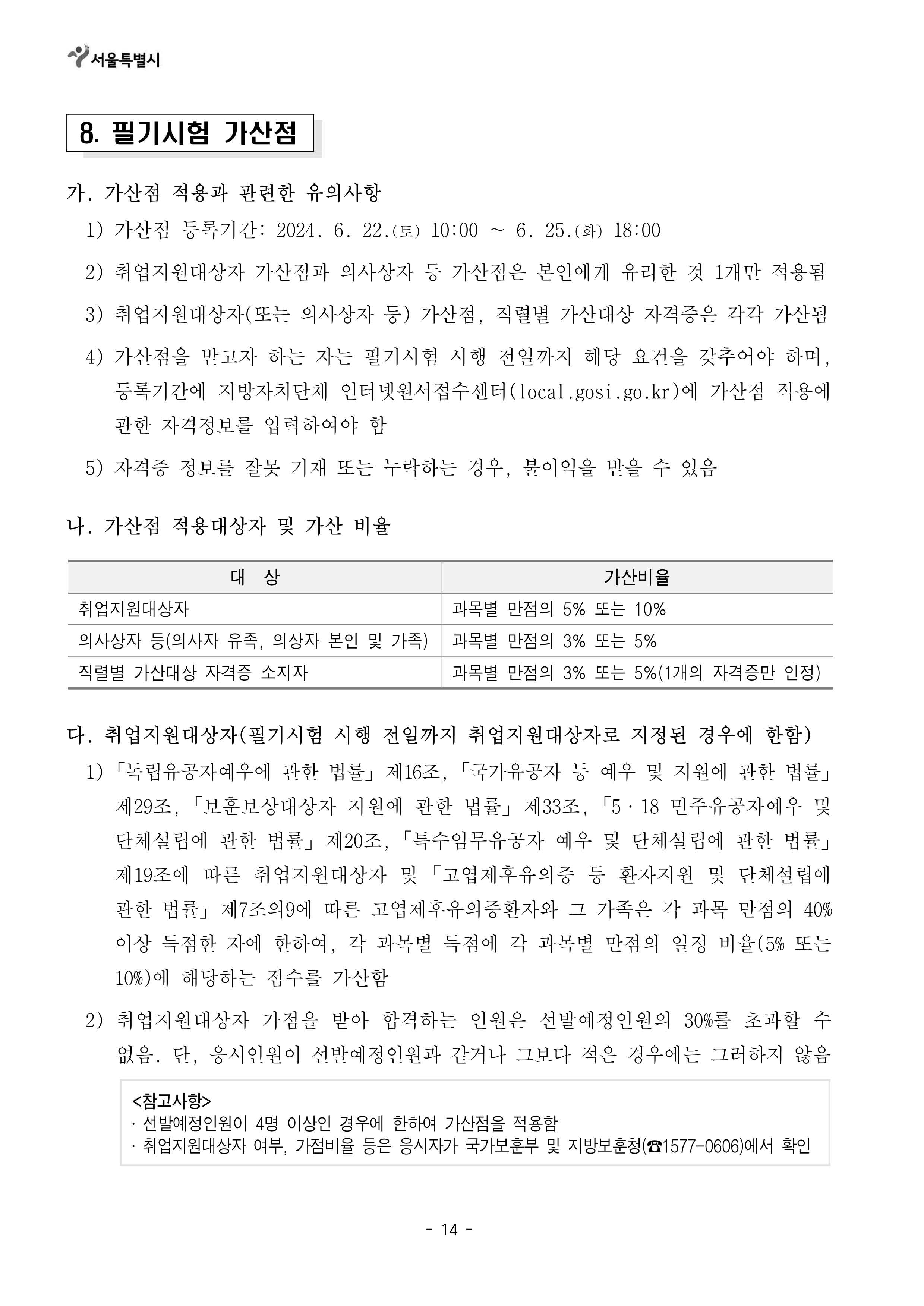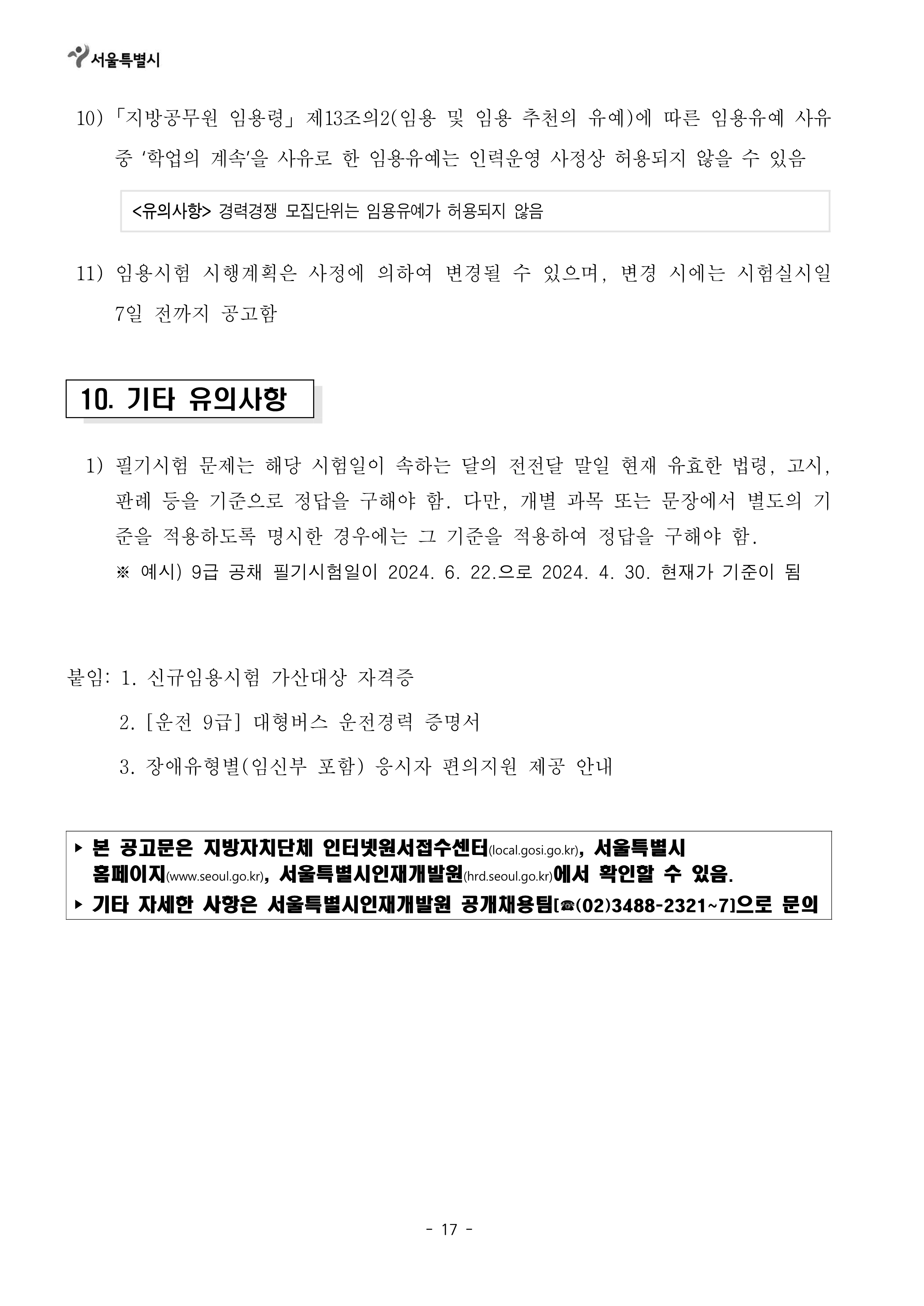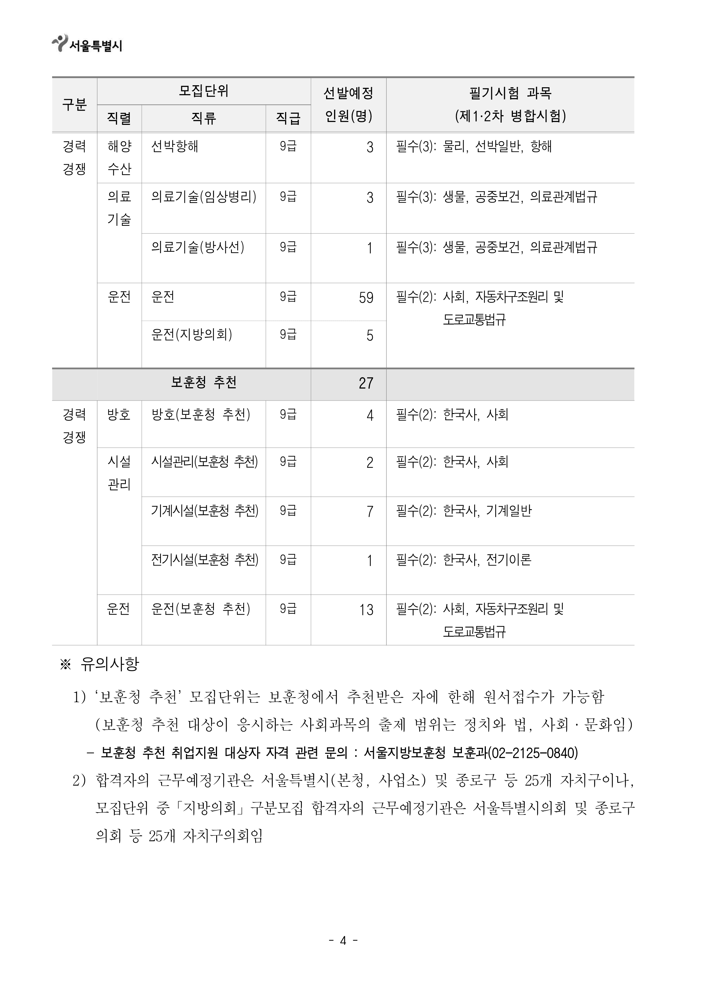 [[시험공고]]2024 서울시 지방공무원(9급 등) 임용시험 공고 (9급접수: 3.25~29 / 9급시험: 6.22) 작성자9꿈사운영위|작성시간24.02.15|조회수7,462 목록 댓글 0 글자크기 작게가 글자크기 크게가 2024년도 제2회 서울특별시 지방공무원 임용시험 시행계획 공고.hwp141.00KB2. 2024년도부터 달라지는 시험제도.hwp160.00KB 첨부파일첨부된 파일이 19개 있습니다. png 파일 2024년도 제2회 서울특별시 지방공무원 임용시험 시행계획 공고_1.png 다운로드 png 파일 2024년도 제2회 서울특별시 지방공무원 임용시험 시행계획 공고_5.png 다운로드 png 파일 2024년도 제2회 서울특별시 지방공무원 임용시험 시행계획 공고_4.png 다운로드 png 파일 2024년도 제2회 서울특별시 지방공무원 임용시험 시행계획 공고_2.png 다운로드 png 파일 2024년도 제2회 서울특별시 지방공무원 임용시험 시행계획 공고_7.png 다운로드 png 파일 2024년도 제2회 서울특별시 지방공무원 임용시험 시행계획 공고_3.png 다운로드 png 파일 2024년도 제2회 서울특별시 지방공무원 임용시험 시행계획 공고_8.png 다운로드 png 파일 2024년도 제2회 서울특별시 지방공무원 임용시험 시행계획 공고_6.png 다운로드 png 파일 2024년도 제2회 서울특별시 지방공무원 임용시험 시행계획 공고_9.png 다운로드 png 파일 2024년도 제2회 서울특별시 지방공무원 임용시험 시행계획 공고_12.png 다운로드 png 파일 2024년도 제2회 서울특별시 지방공무원 임용시험 시행계획 공고_10.png 다운로드 png 파일 2024년도 제2회 서울특별시 지방공무원 임용시험 시행계획 공고_11.png 다운로드 png 파일 2024년도 제2회 서울특별시 지방공무원 임용시험 시행계획 공고_13.png 다운로드 png 파일 2024년도 제2회 서울특별시 지방공무원 임용시험 시행계획 공고_14.png 다운로드 png 파일 2024년도 제2회 서울특별시 지방공무원 임용시험 시행계획 공고_17.png 다운로드 png 파일 2024년도 제2회 서울특별시 지방공무원 임용시험 시행계획 공고_15.png 다운로드 png 파일 2024년도 제2회 서울특별시 지방공무원 임용시험 시행계획 공고_16.png 다운로드 hwp 파일 2024년도 제2회 서울특별시 지방공무원 임용시험 시행계획 공고.hwp 다운로드 hwp 파일 2. 2024년도부터 달라지는 시험제도.hwp 다운로드 다음검색 현재 게시글 추가 기능 열기 북마크 공유하기 신고 센터로 신고 댓글 댓글 0 댓글쓰기 답글쓰기 댓글 리스트