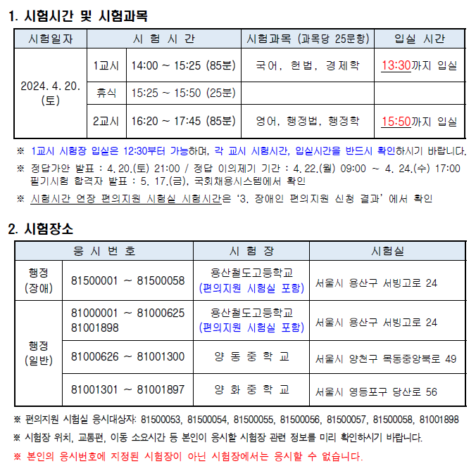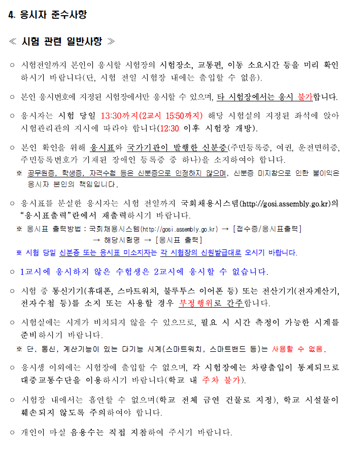 [[시험장소]]2024 국회사무처 국회직 8급 공무원 공채 필기시험 장소공고 (시험: 4.20) 작성자9꿈사운영위|작성시간24.04.16|조회수591 목록 댓글 0 글자크기 작게가 글자크기 크게가 [2024-74] 2024년도 8급 공개경쟁채용시험 필기시험 시간 및 장소 공고.pdf606.12KB 첨부파일첨부된 파일이 5개 있습니다. png 파일 국회직8급 시험장소1.png 다운로드 png 파일 국회직8급 시험장소2.png 다운로드 png 파일 국회직8급 시험장소3.png 다운로드 png 파일 국회직8급 시험장소4.png 다운로드 pdf 파일 [2024-74] 2024년도 8급 공개경쟁채용시험 필기시험 시간 및 장소 공고.pdf 다운로드 다음검색 현재 게시글 추가 기능 열기 북마크 공유하기 신고 센터로 신고 댓글 댓글 0 댓글쓰기 답글쓰기 댓글 리스트