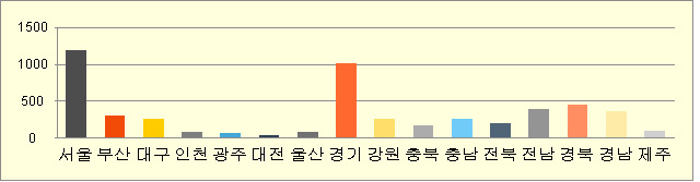 ○ 서울(1,192명), 경기(1,007명), 경북(455명), 전남(393명), 경남(363명)순으로 많은 인원을 선발하며,
