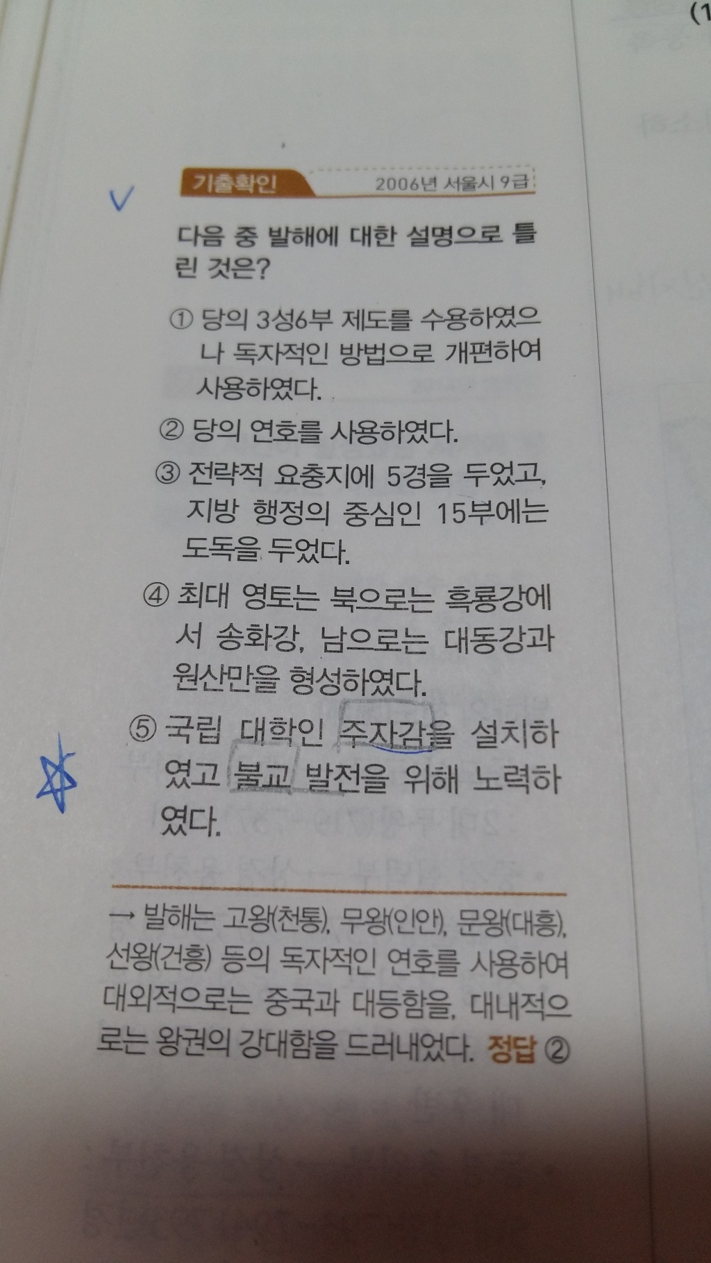 주자감을 설치하였고/ 불교 발전억 노력하였다. 두개로 생각하면 될듯요.