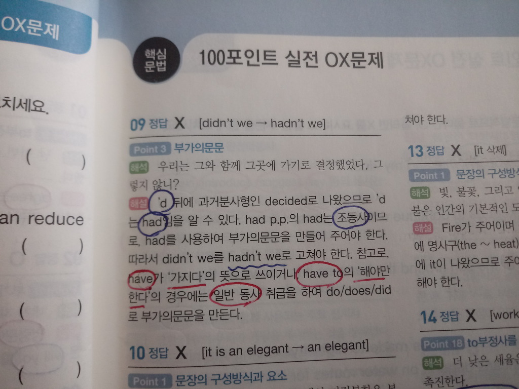 9번 문제 해설에서 have to 가 조동사인데 일반동사 취급한다고 하는데 have to 의 부가 의문이 hadn't가 아닌가요?