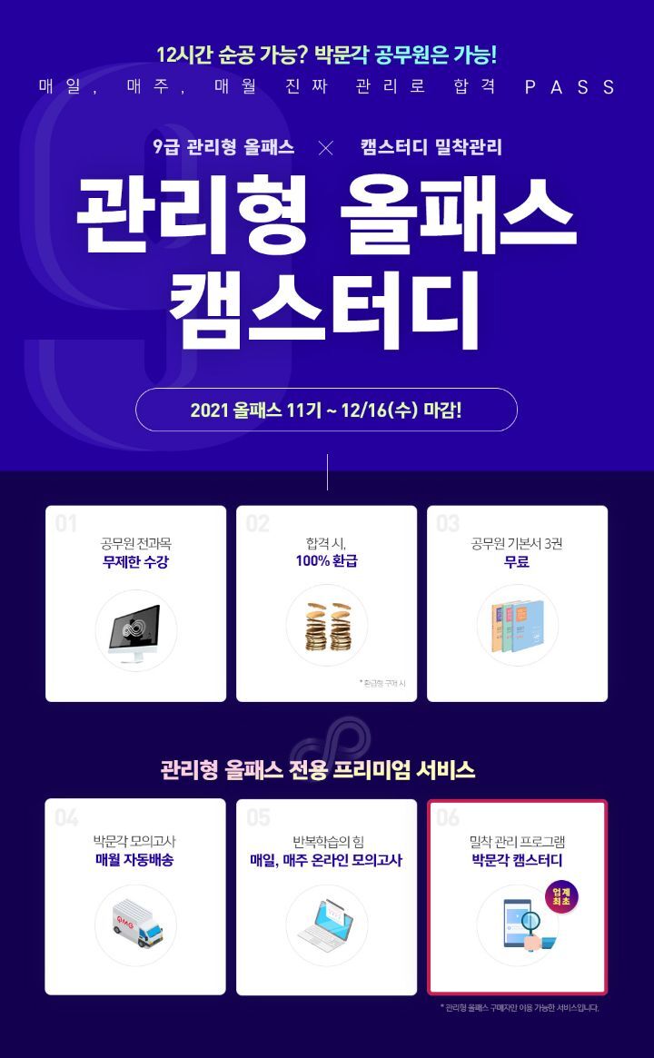 박문각공무원 관리형 올패스로 공부하고 단기합격 갑시다!!!! 작성자드림컴투|작성시간20.12.14|조회수153 목록 댓글 0 글자크기 작게가 글자크기 크게가 http://www.pmg.co.kr/user/pno/event/event_allpass.aspSince 1972, 박문각공무원,부동산,임용,경찰,자격,입시,어학 교육 온라인,학원,출판 서비스 제공www.pmg.co.kr 다음검색 현재 게시글 추가 기능 열기 북마크 공유하기 신고 센터로 신고 댓글 댓글 0 댓글쓰기 답글쓰기 댓글 리스트