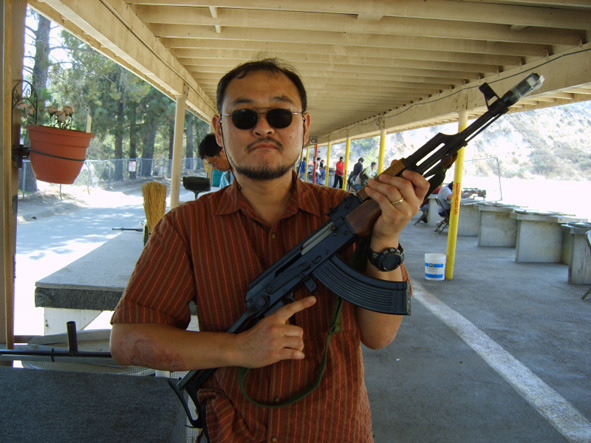 미국 LA 인근 사격장에서 AK보총을 들고 있는 전양덕 (2007-08-05)