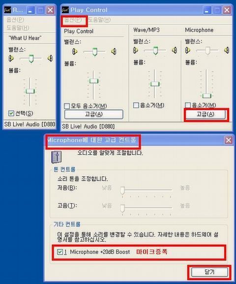 근데 전 그거 안눌러도 맨트가 되요,,,  -- 이부분에 대한 설명이지요. 만일, 위의 설명대로 했는데도 그런 현상이 생기면 님의 사운드카드 문제이니 임시방편으로 ON/OFF 기능이있는 마이크를 사용하시면 됩니다