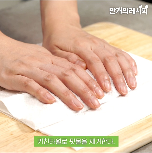1. 소고기 핏기를 제거하면 소고기 특유의 잡내를 잡을 수 있다. 키친타월로 핏기를 제거한다.