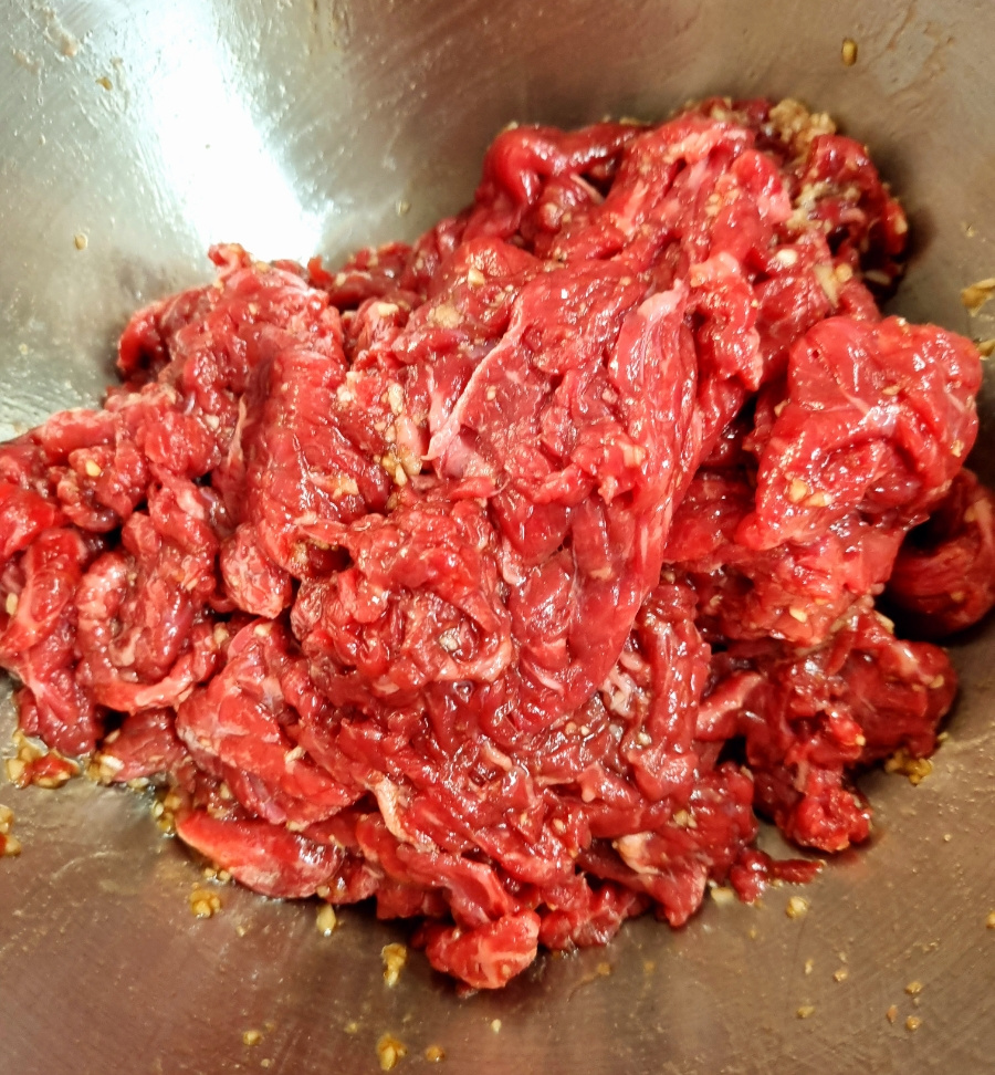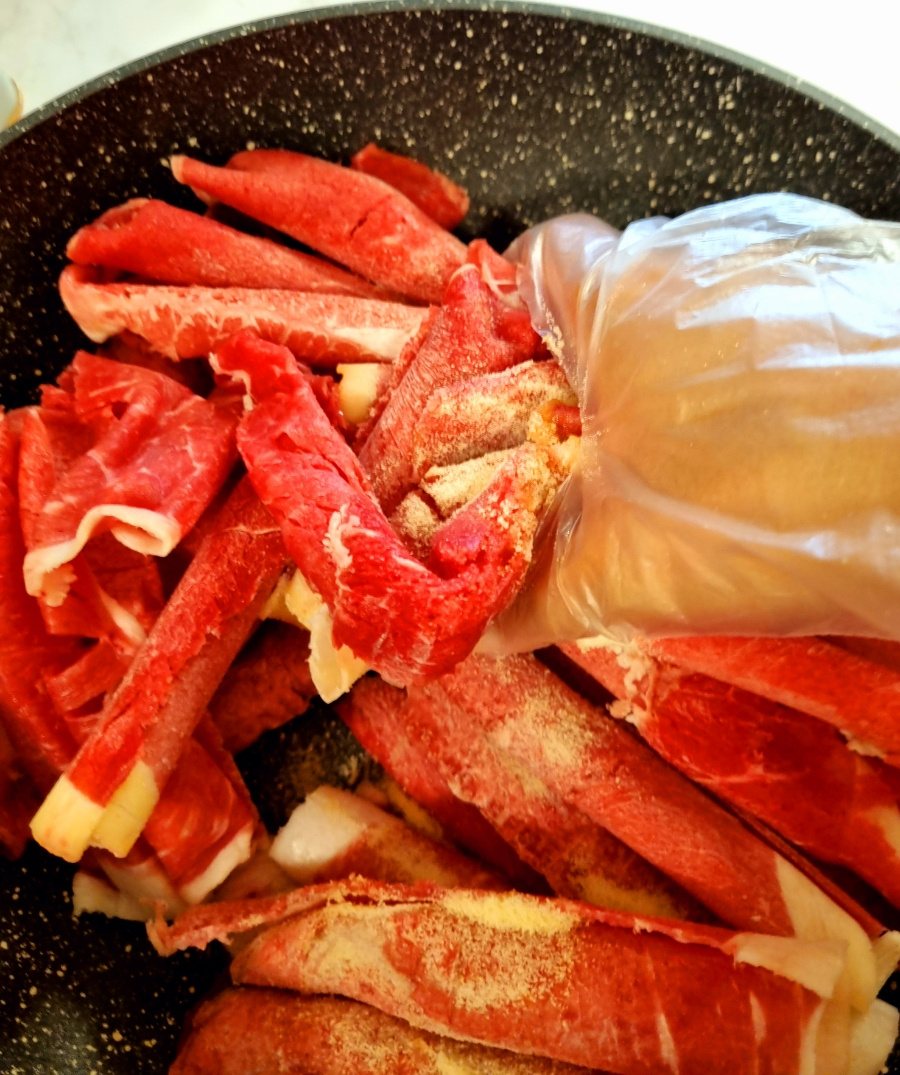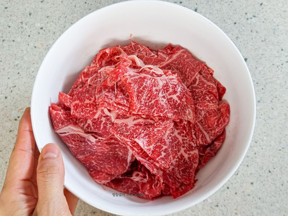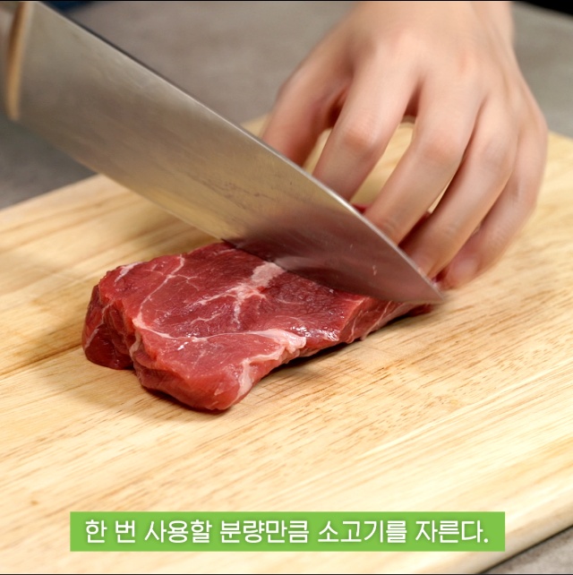 1. 한 번 사용할 분량만큼 소고기를 자른다