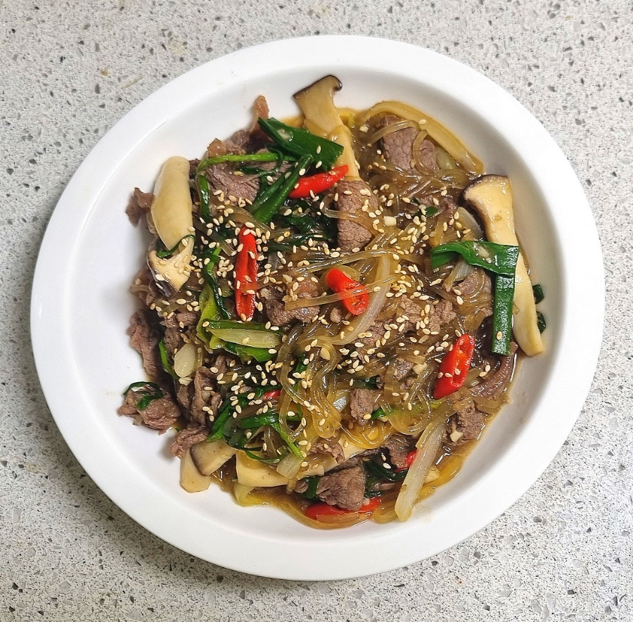 재료 : 소불고기, 양파, 버섯, 부추, 고추, 다진마늘, 간장, 참치액젓, 설탕, 올리고당, 참기름,