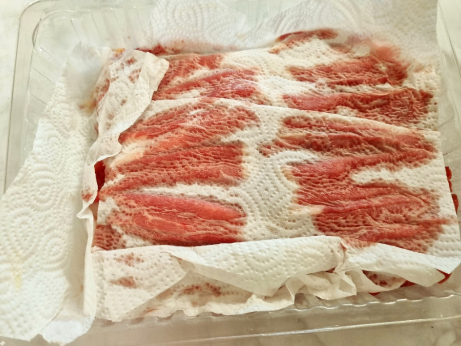 1. 소고기는 키친타올로 핏물을 먼저 빼 준다.