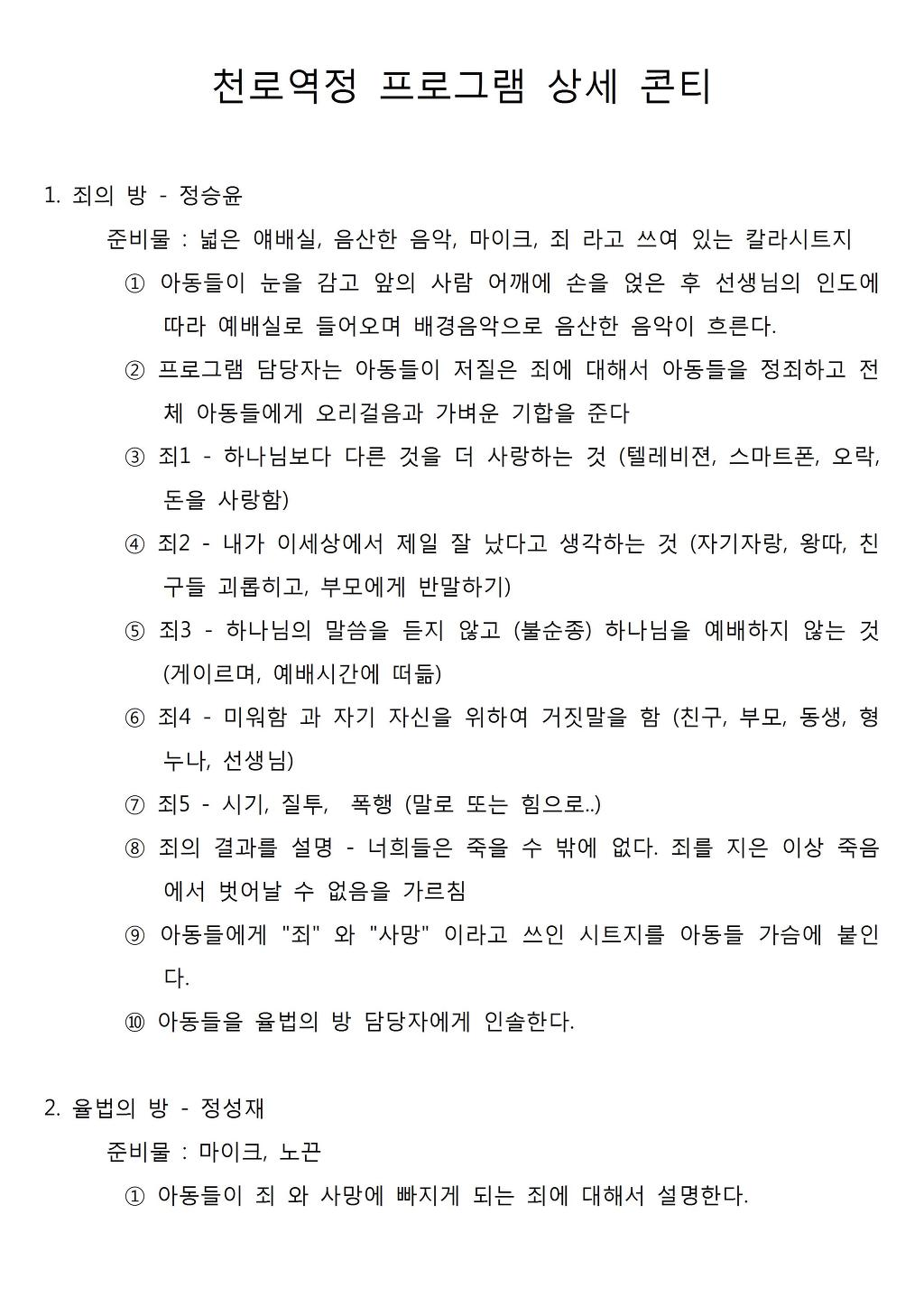 동계수련회 천로역정 세부 콘티 작성자정승윤|작성시간15.01.21|조회수837 목록 댓글 0 글자크기 작게가 글자크기 크게가 천로역정 프로그램 상세 콘티.hwp 첨부파일첨부된 파일이 4개 있습니다. jpg 파일 image001.jpg 다운로드 jpg 파일 image002.jpg 다운로드 jpg 파일 image003.jpg 다운로드 hwp 파일 천로역정 프로그램 상세 콘티.hwp 다운로드 다음검색 현재 게시글 추가 기능 열기 북마크 공유하기 신고 센터로 신고 댓글 댓글 0 댓글쓰기 답글쓰기 댓글 리스트