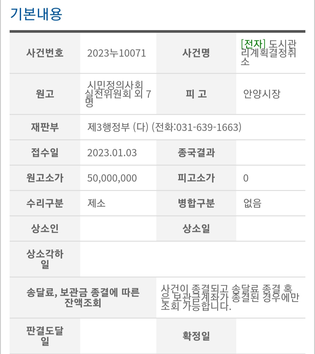 안양터미널용도폐지 취소소송의 판결선고일이 당초 2024.1.24일에서 2024.2.28일로 변경되었다.