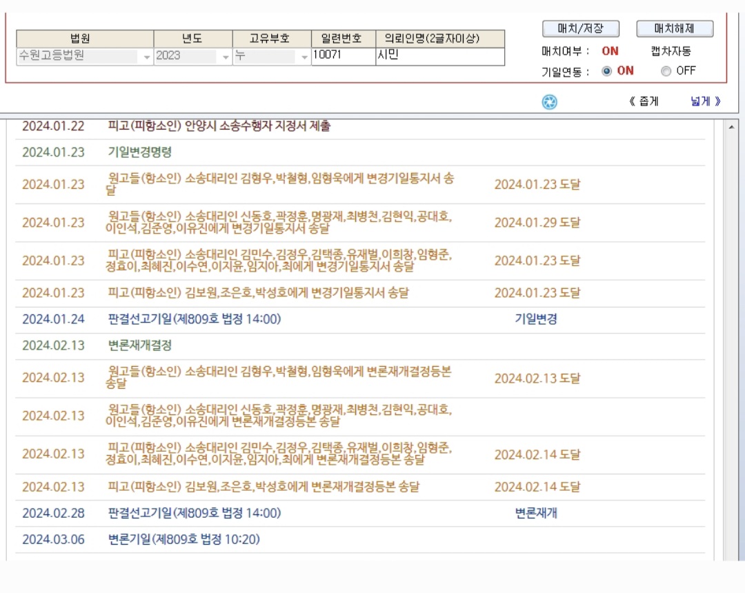 당초 1월24일 판결선고가 2월28일로 변경되었습니다. 이번에 다시 3월6일 10:20 (809호 법정)으로 지정되었습니다.